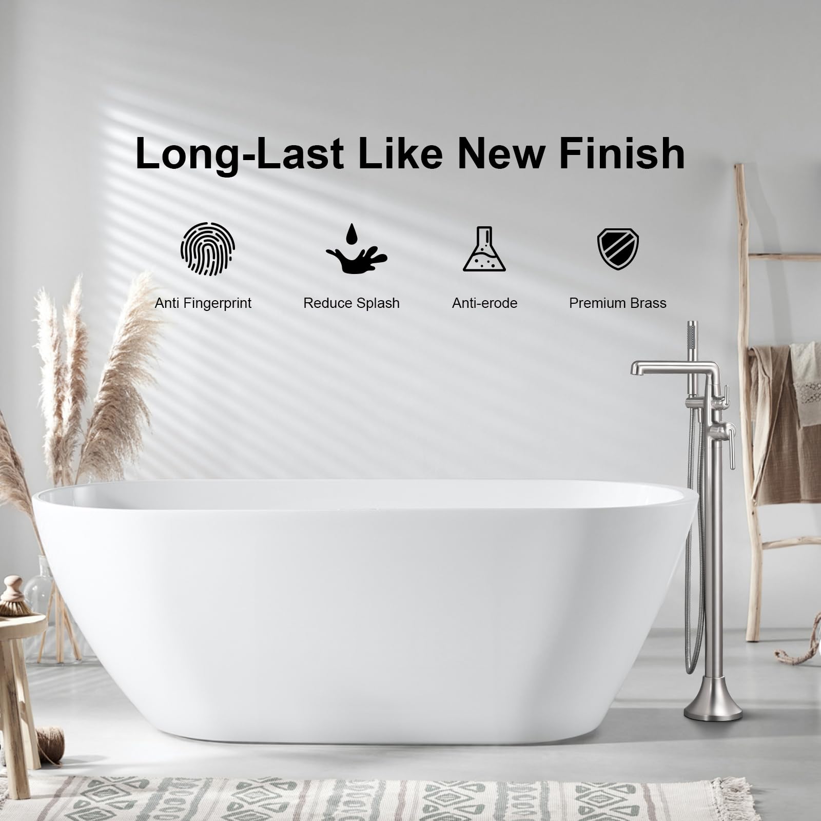 【PREMIUM SOLID BRASS 】This freestanding tub faucets is constructed from the Premium brass and Brushed Nickel finished in corrosion and rust-resistant for durability and reliability. Vintage/modern design suits most bathroom & tubs in American home.