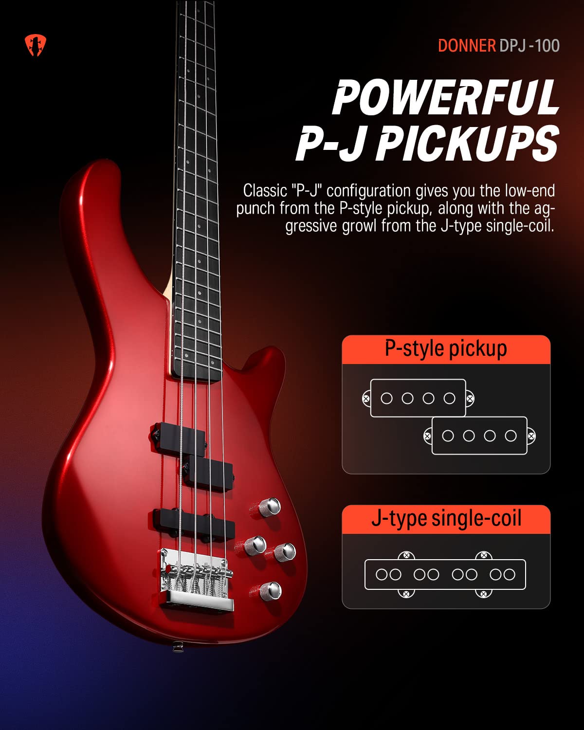 [Custom PJ-Style Pickups]: To give the DPJ-100 electric bass its powerful sonic foundation, we equipped it with a pair of Custom PJ-Style pickups to provide you the fat and punchy tone and a wide range of sounds you demand plus excellent playability