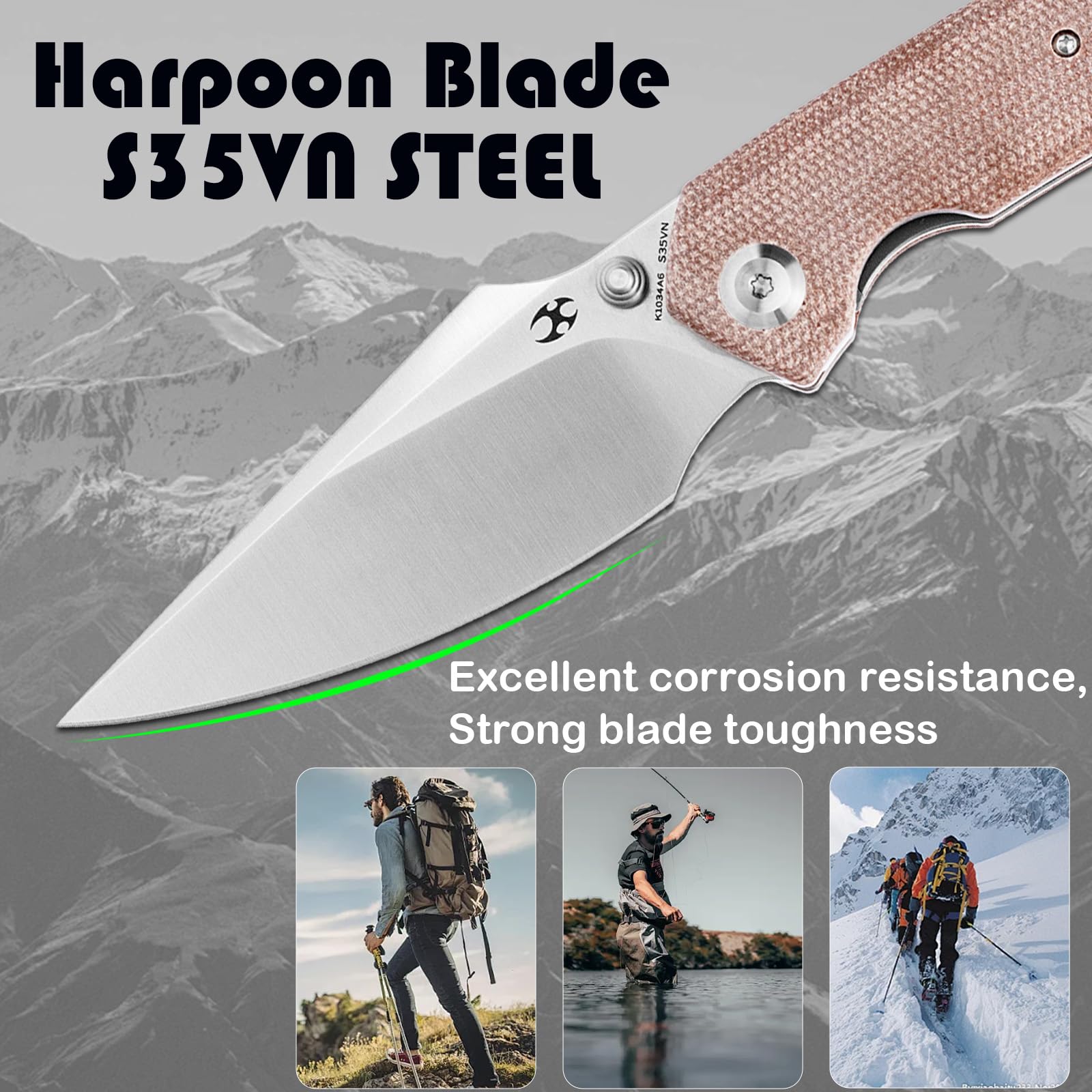 Excellent Design and Materials: Sharp Folding Pocket Knives have 3.48'' Satin CPM-S35VN blade with hardness 58-60 RC, provides excellent cutting performance and edge retention.