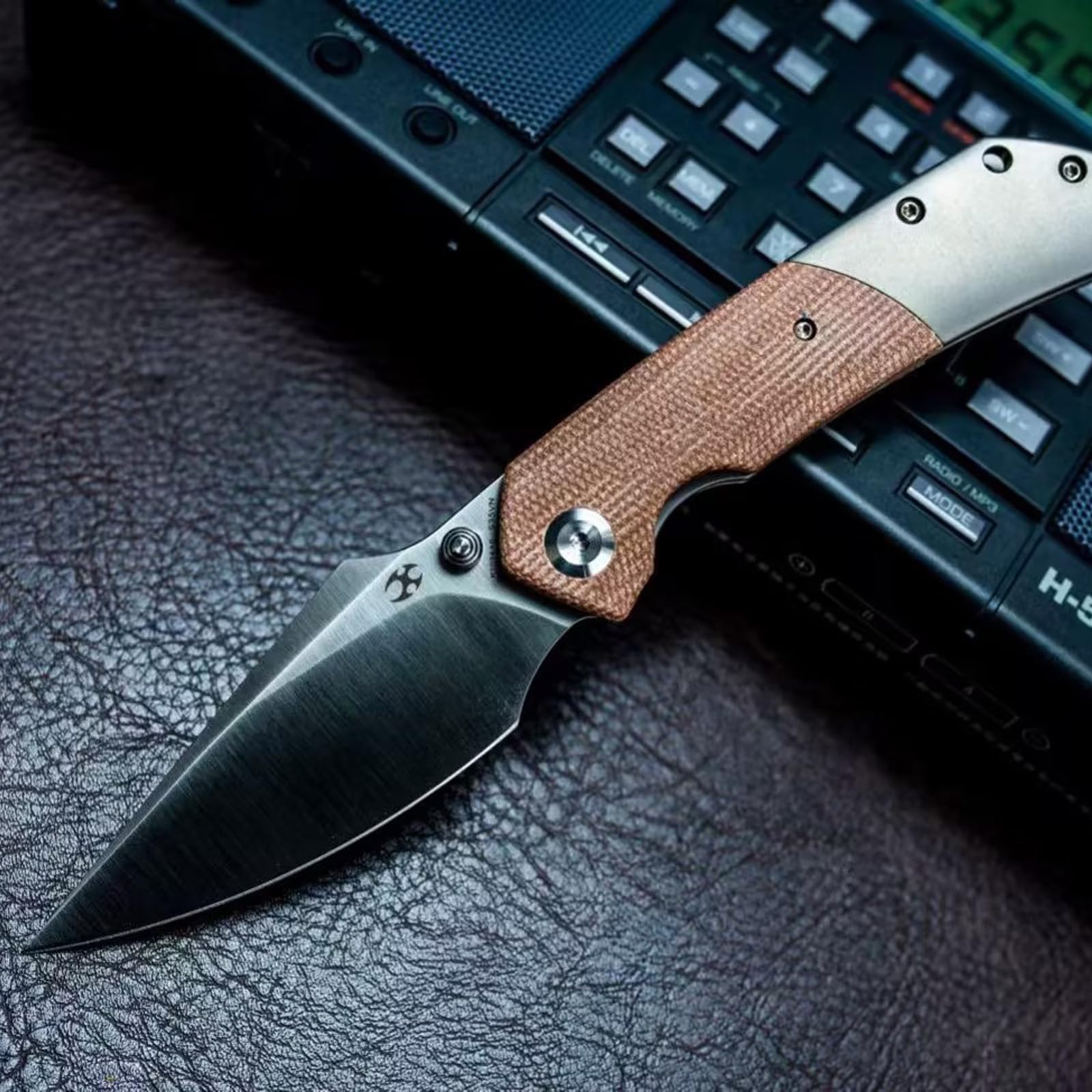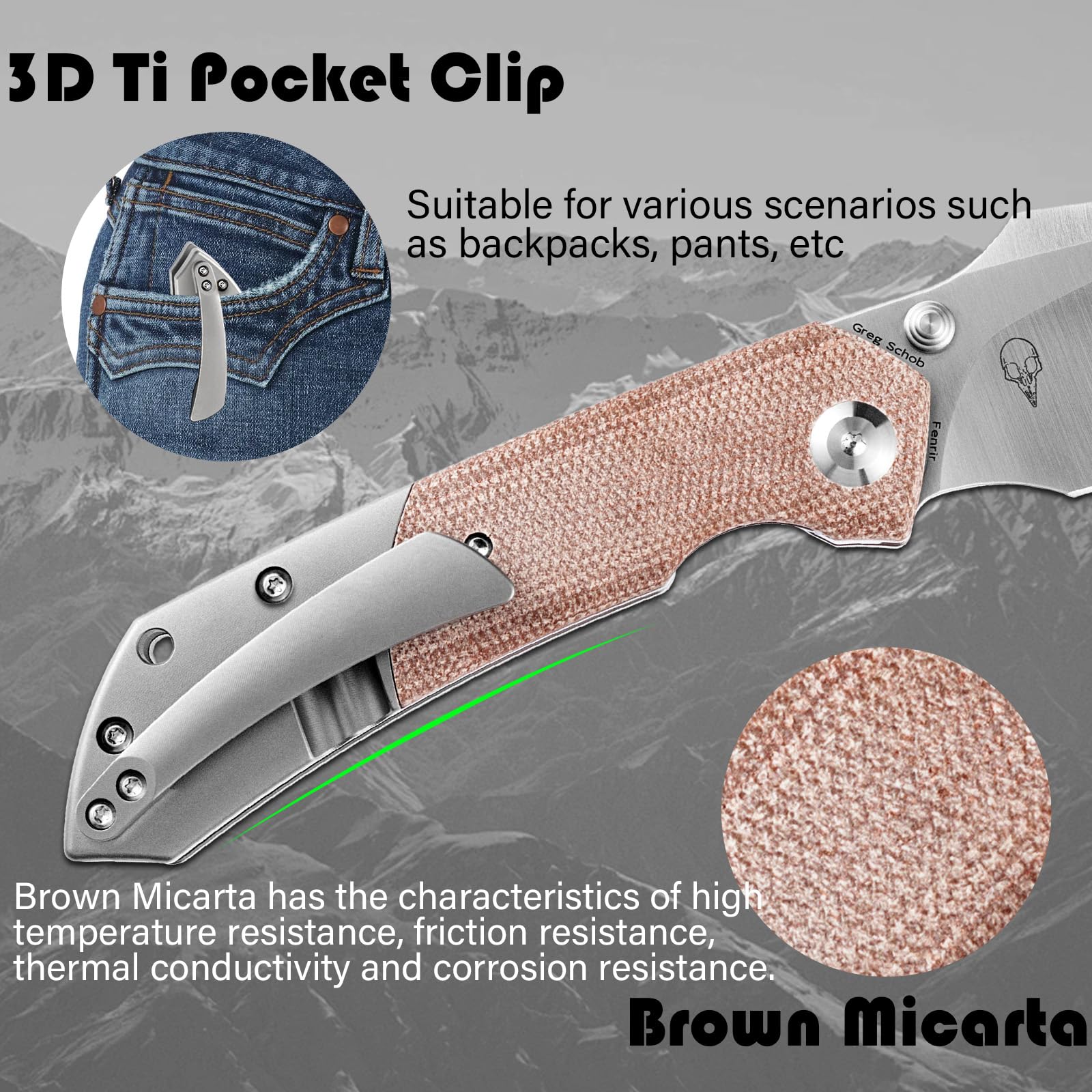 Ergonomic Handle Grip: Multitool pocket knife with Brown Micarta + Titanium handle is chamfered for secure and comfortable grip.The skeletonized liners help reduce weight without sacrificing structural integrity.