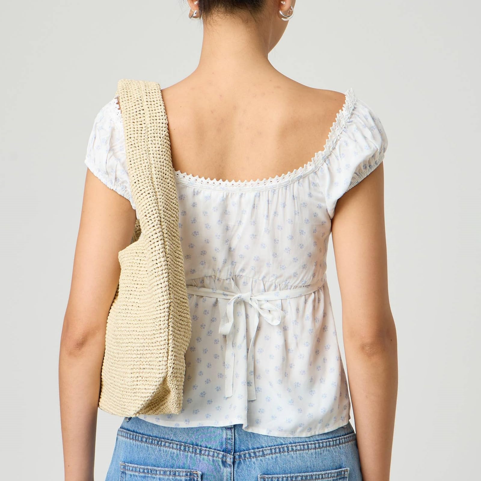 Design: Women vintage y2k short sleeve tee tops, 90s aesthetic t-shirt, short sleeve, lace patchwork, crew neck, slim fit, cropped length, fairy grunge t-shirt.