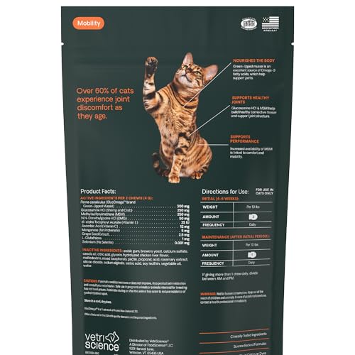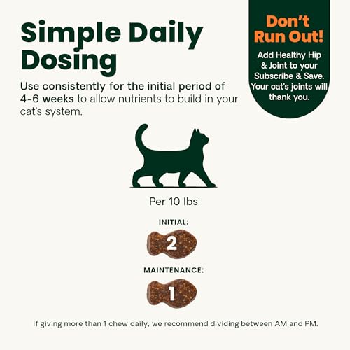 For Active & Senior Cats: Bite-sized hip and joint chews are ideal for cats that are slowing down or showing signs of fatigue or weakness in their hind end as well as cats that are recovering from surgery or periods of restricted movement