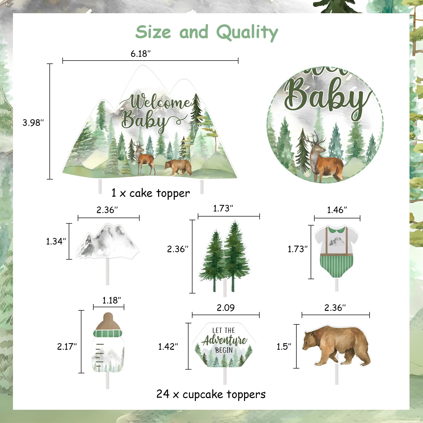 Safe Material: Our mountain baby shower cake decorations are made of card paper, eco-friendly and no smell. Patterns are vivid without fading. All cupcake decors are completely safe for children and adults.