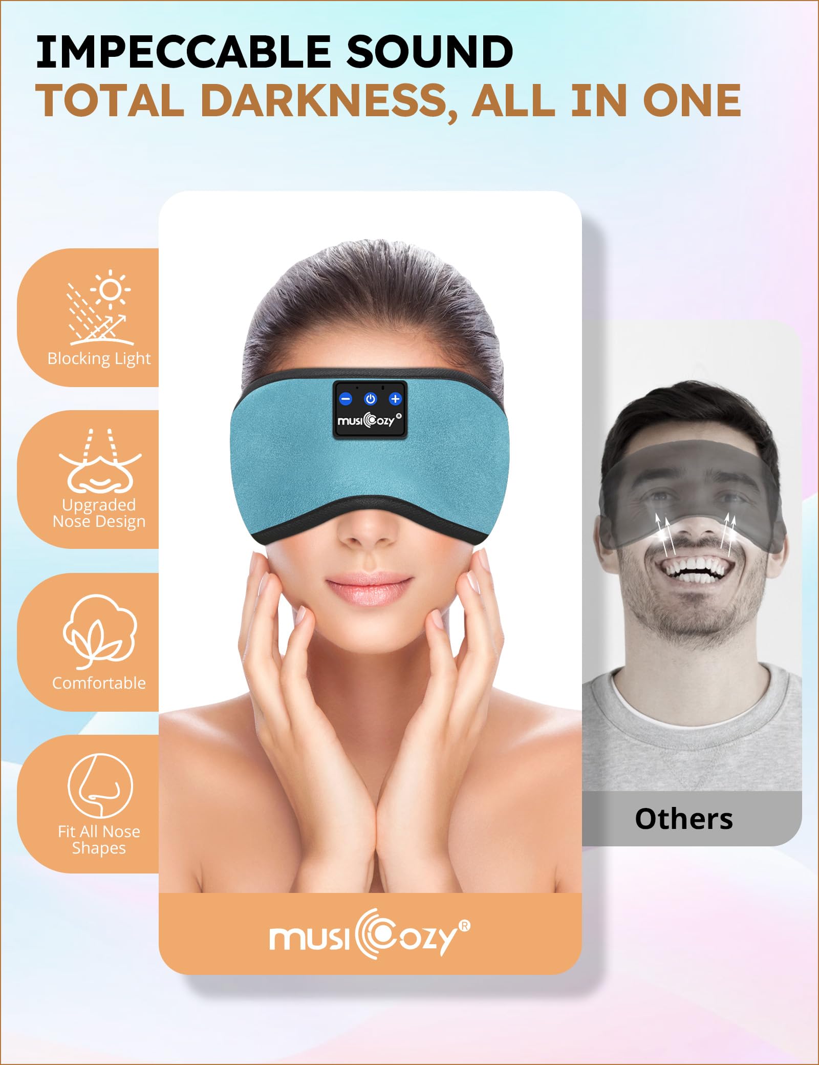 Comfortable & Ergonomic Design: The MUSICOZY Bluetooth Eye Mask combines the benefits of Bluetooth headphones with a sleep mask; made from soft velvet and stretch cotton, it offers total darkness and comfort, ideal for side sleepers and those needing relaxation, naps, or peaceful sleep