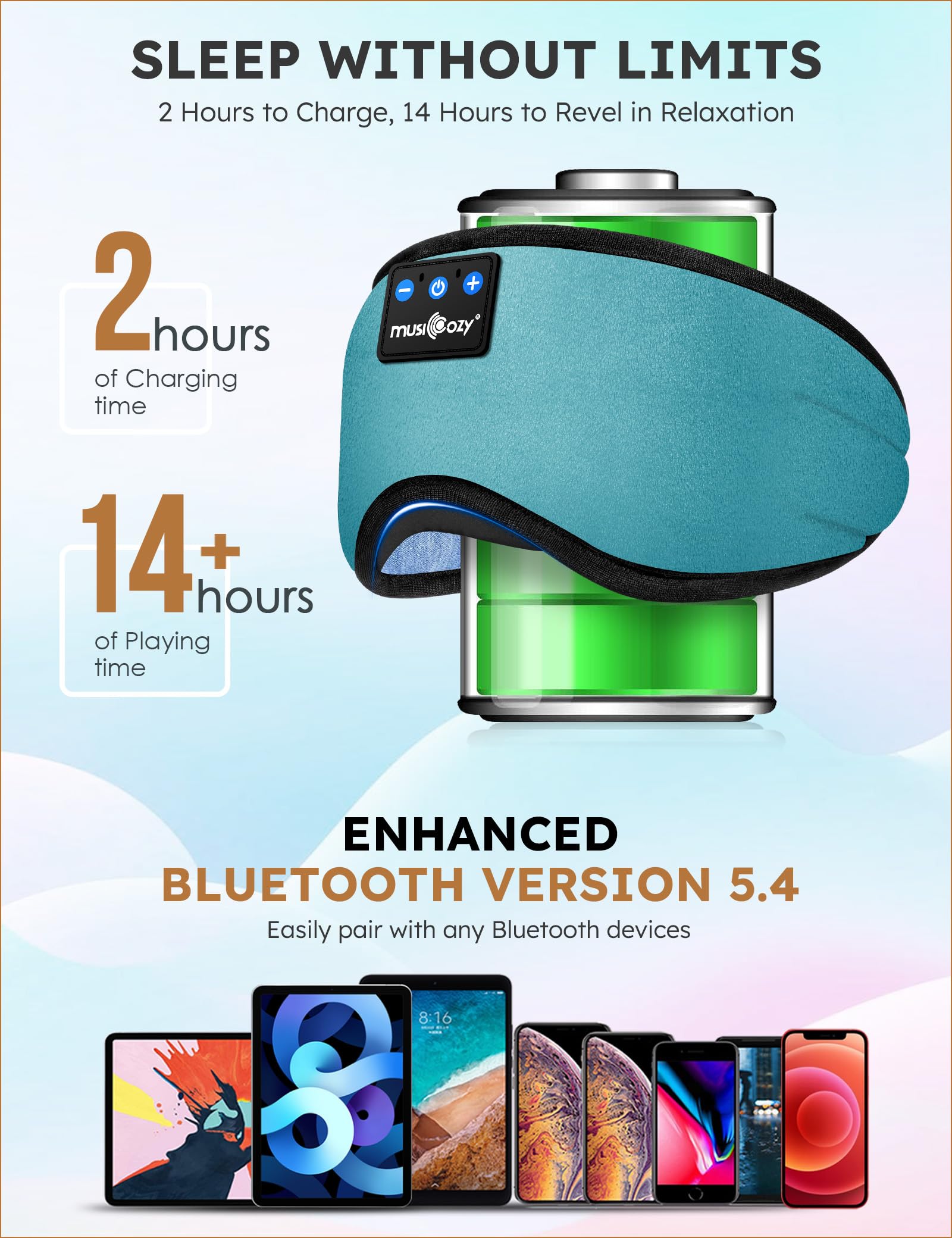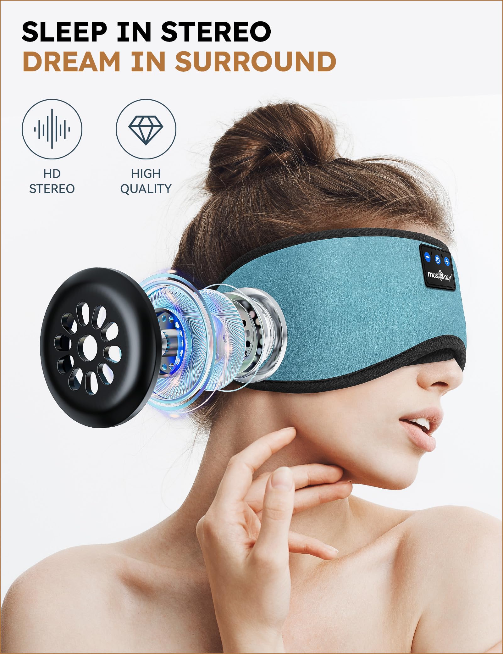 Excellent Stereo Sound Quality: Enjoy true HD sound with these Bluetooth sleep headphones; the MUSICOZY sleep mask with Bluetooth headphones features the latest Bluetooth 5.4 technology, delivering high-fidelity audio that easily pairs with your devices, making it perfect for side sleeping and deep relaxation