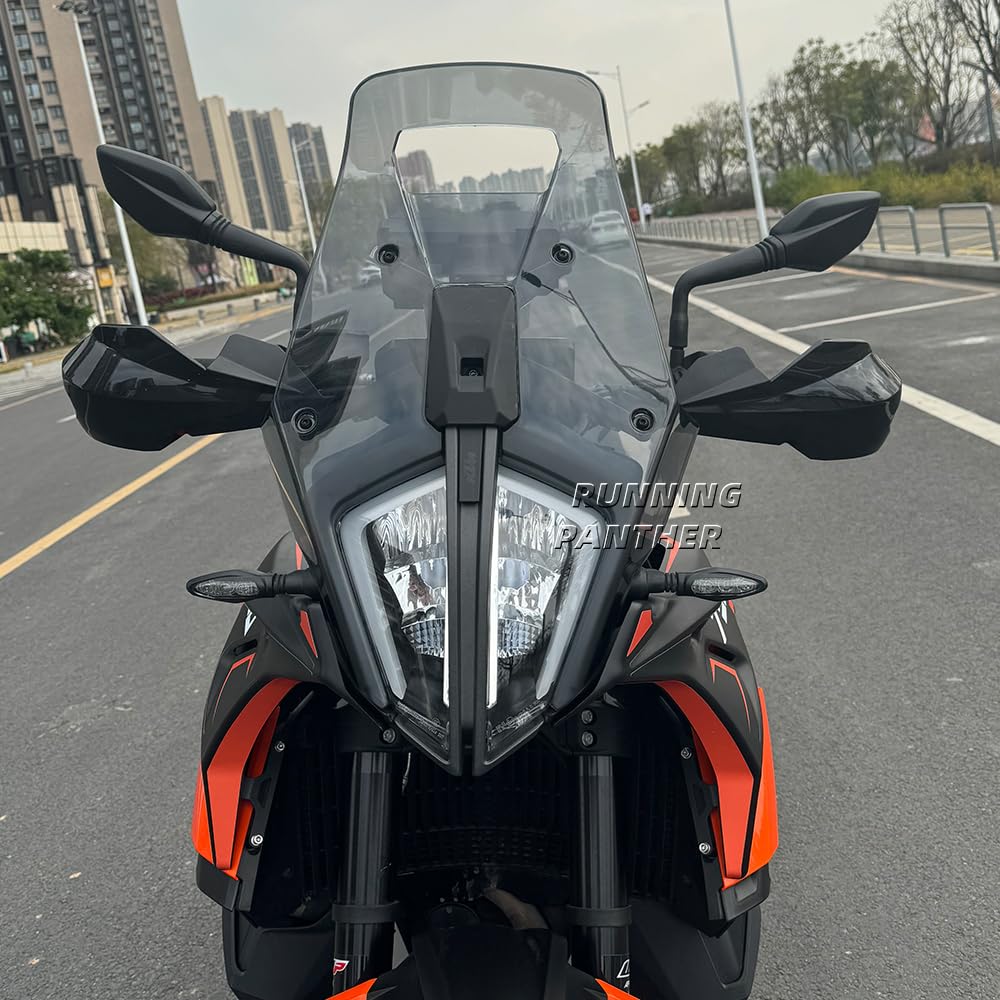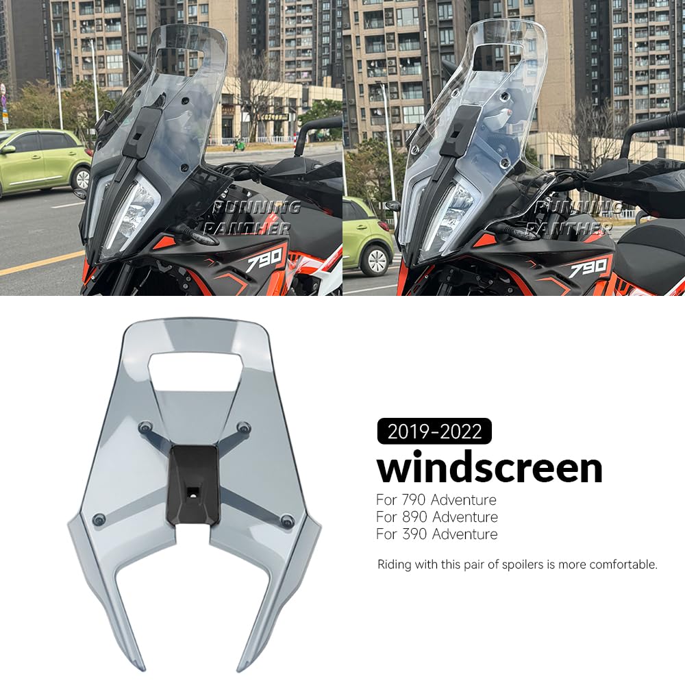 RUNNING PANTHER Windshield Deflectors for 790 890 ADV Adventure R Rally 2023-2024, Motorcycle Front Acrylic Wind Shield Air Deflector WindScreen Visor Accessories for 790 890 ADV R Rally 2023 2024 Description: - Type:Windshield - Condition:100% Brand New - Material:Made Of Impact Resistant Acrylic Acid - Package:Ship according to the picture option content Fitment: - For 790 Adventure 2023-2024 - For 790 Adventure R 2023-2024 - For 790 Adventure R Rally 2023-2024 - For 890 Adventure 2023-2024 - For 890 Adventure R 2023-2024 - For 890 Adventure R Rally 2023-2024 Features: - Aerodynamics, The circular arc design can better guide the wind direction, Prevent direct wind direction. - Protect motorcycle enthusiasts from the wind, thrown-up rocks, debris, and bugs. - It has solid hardware, so it is stable. - Will deflect more wind for a more comfortable ride, and this makes a more relaxing and safe ride. - High-grade and high-tech impact-modified windscreen. Note: - Light shooting and different displays may cause the color of the item in the picture a little different from the real thing. - The product does not include installation instructions, please contact customer service if necessary - Please Ensure This Part Fits For Your Motorcycle Before order