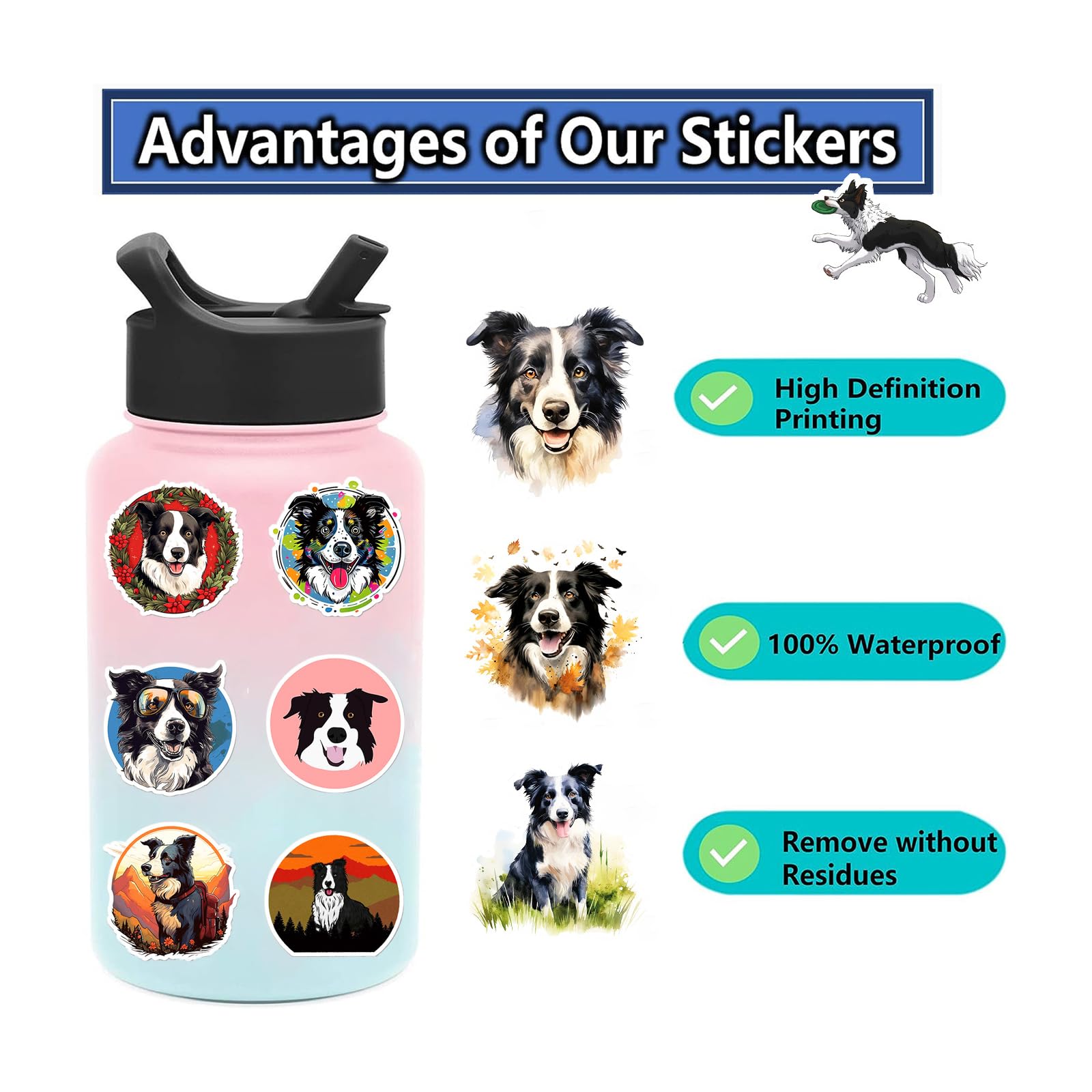 Border Collie Dog Stickers:This series of stickers including 50pcs are specially designed for Cartoon Border Collie Dog Stickers. All the Stickers are durable waterproof vinyl.Unique Personalized Pattern perfect for Kids Gift