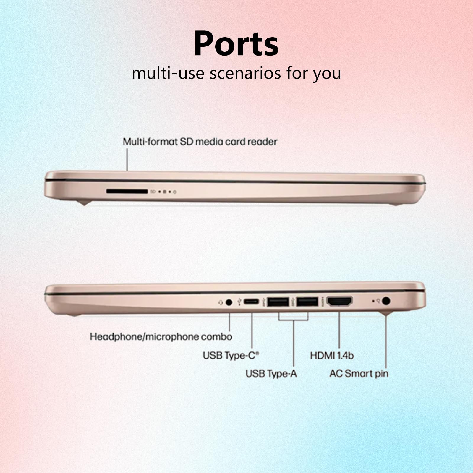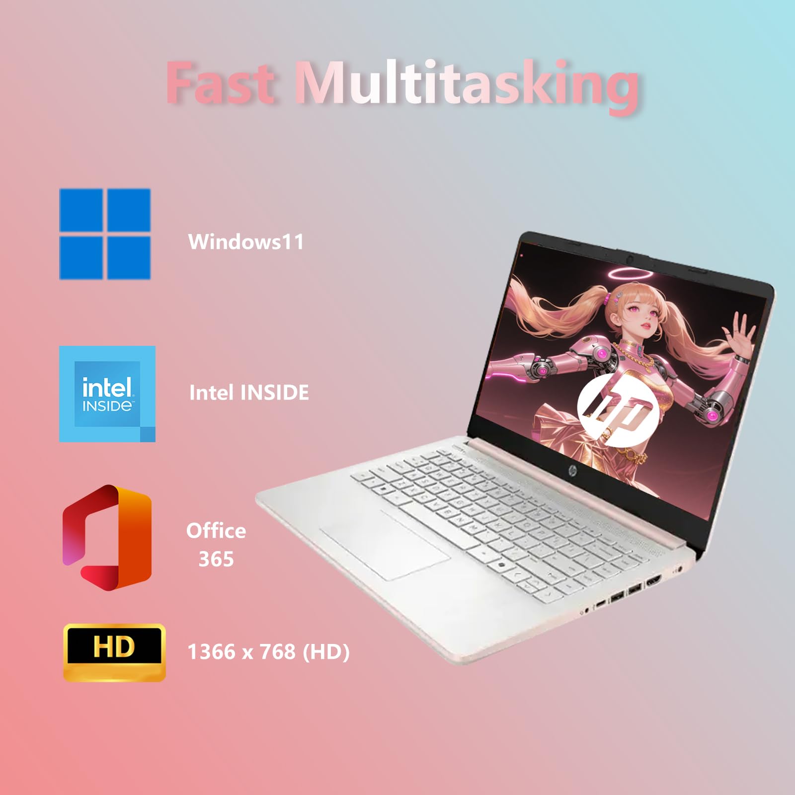 Introducing the HP 14 Laptop: Your All-in-One Powerhouse for Success.Designed for those who refuse to compromise, the HP 14 Rose Gold Pink Laptop combines sleek aesthetics with reliable performance. Whether you are navigating a demanding college curriculum or managing a growing business, this 8GB RAM laptop provides the speed and stability you need to stay ahead.Versatile Storage Solution: 128GB Fast Storage + 1TB Secure Cloud ServiceWe understand that modern students and professionals need massive space without the massive price tag. That is why we have equipped this device with an innovative storage ecosystem. By combining fast internal system storage, a high-speed 64GB MicroSD expansion (Included), and 1TB of Secure Cloud Storage, we ensure you have immediate access to your essential files offline and a massive vault for your data online.