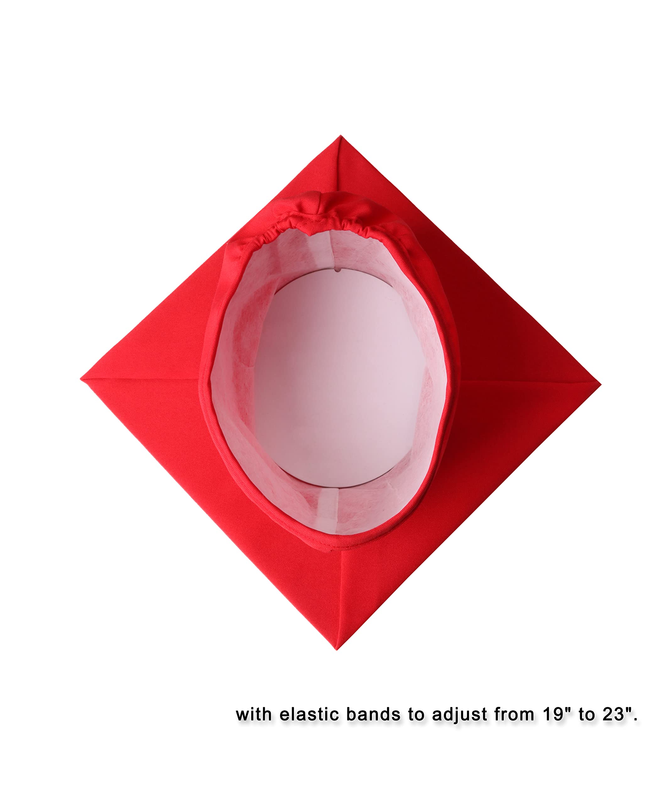 Unisex Adult. Graduation cap with an elastic band, adjust the range of 19"~23". Top of hat measures: 9"x9".