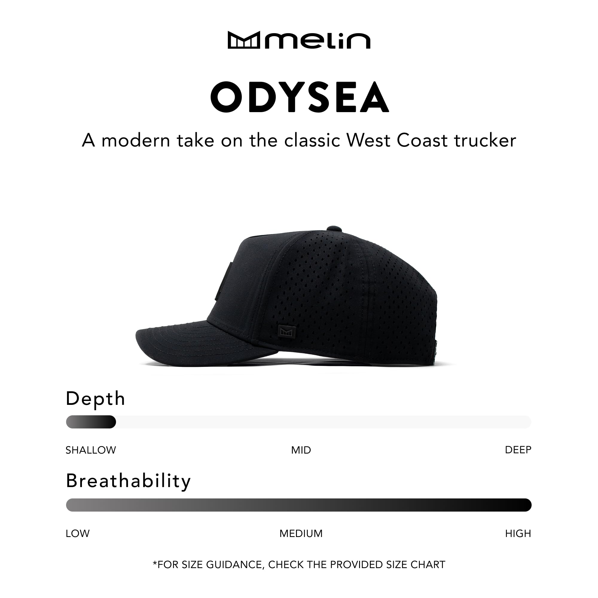 WATER & SWEAT REPELLENT: The melin Odysea Stacked Hydro unisex hat features a durable, breathable design that combines hydrophobic technology designed to repel water and prevent absorption, and moisture-wicking lining to keep your hat and head dry