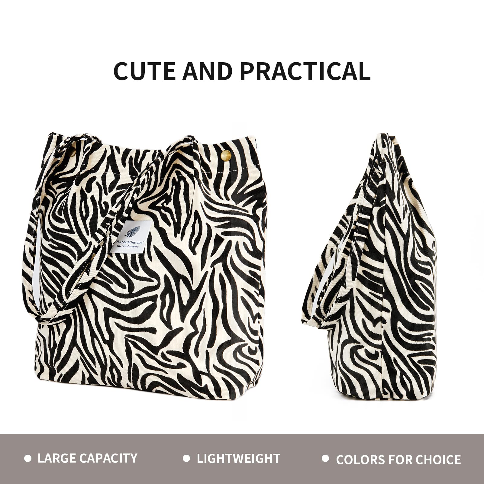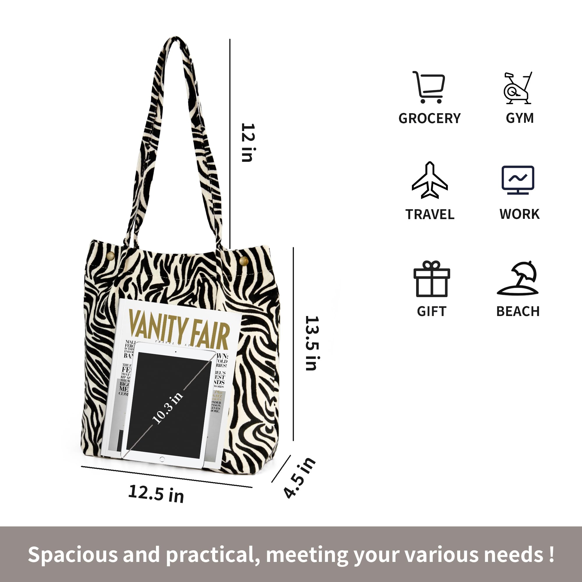 IDEAL SIZE: The cute tote bag measures 13.5 x 12.5 x 4.5 inches and the shoulder strap is 12 inches long, lightweight and portable, with enough capacity for daily shopping, travel, office, easily holds water bottles, iPads, mobile phones, A4 size magazines, Wallets, toiletries, cosmetics, clothes, drinking glasses, umbrellas, etc.