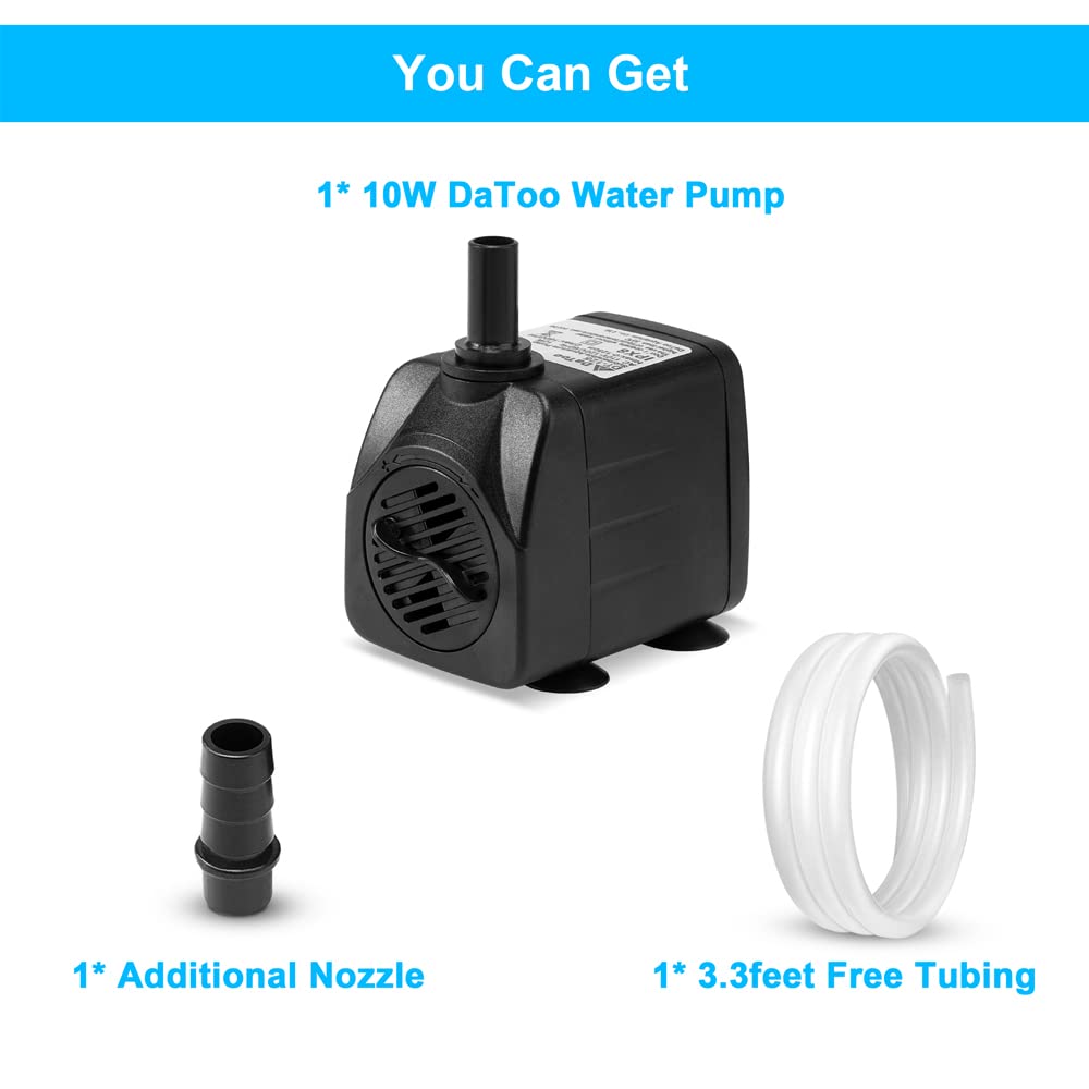 【DaToo 10W 160GPH Water Pump】: A perfect aquarium water pump can always bring you unexpected surprises. It can easily help you create different water currents, activate the water body, and make your fish more vigorous. DaToo 10W 160GPH Water Pump, perfect water control system, safe and leading structure design, super quiet working sound, easy to set. An ideal water steward for your small to medium size aquarium, fish tank, pond, tabletop fountains, water gardens and hydroponic systems.