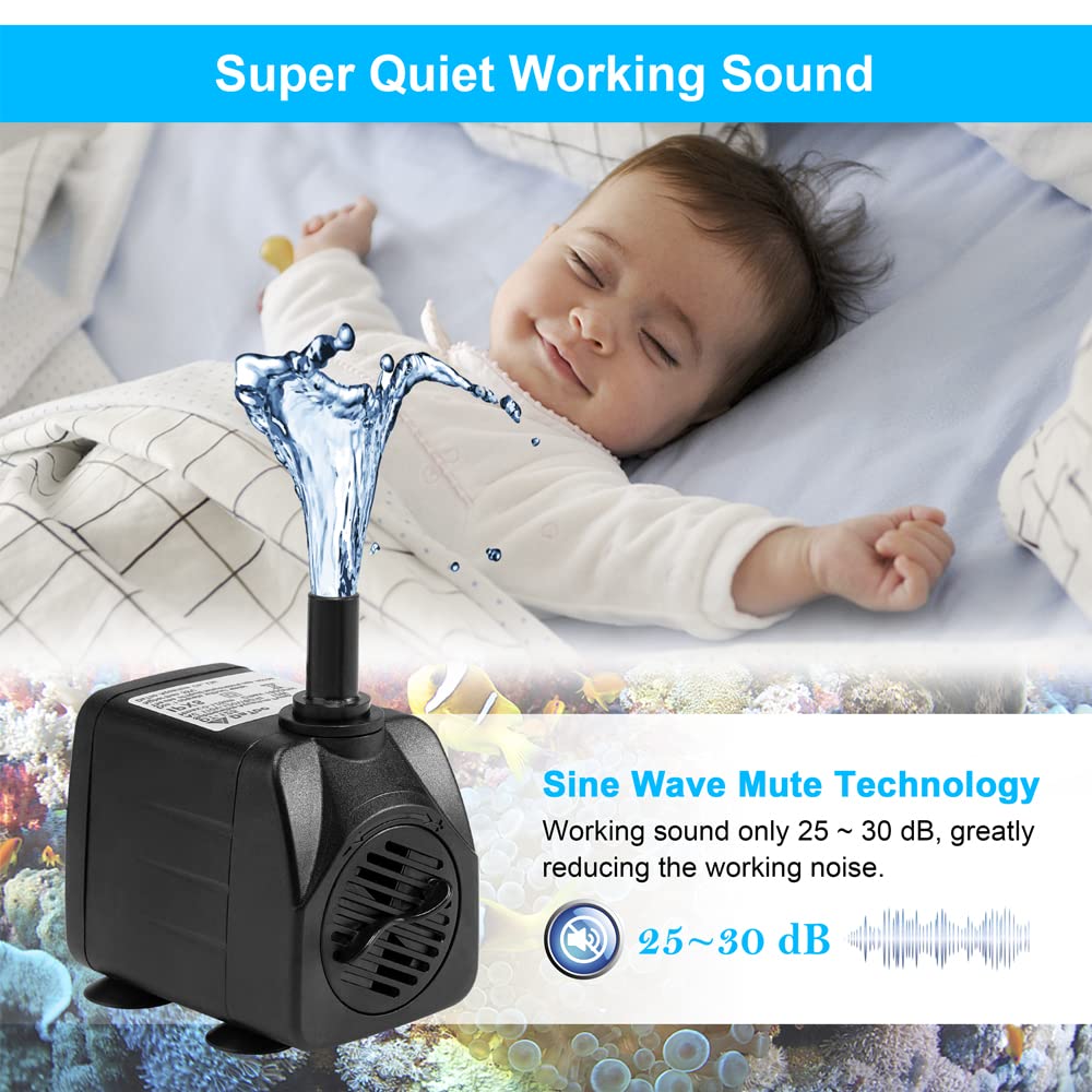 【Super Quiet Working Sound】: Whether for people or fish, it is a wonderful thing to have a quiet night. DaToo adopts sine wave mute technology exclusively, which makes the working sound of the DaToo water pump only 25 ~ 30 dB, greatly reducing the working noise. Easy for you to prepare a quiet perfect night! Great!