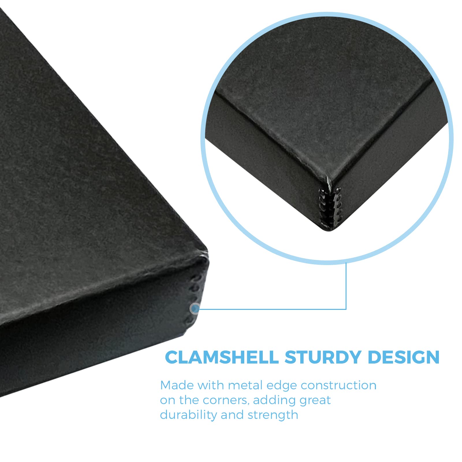 Acid-free and Lignin-free boxes manufactured in the US from Black 60pt archival boxboard with metal edge construction for additional strength