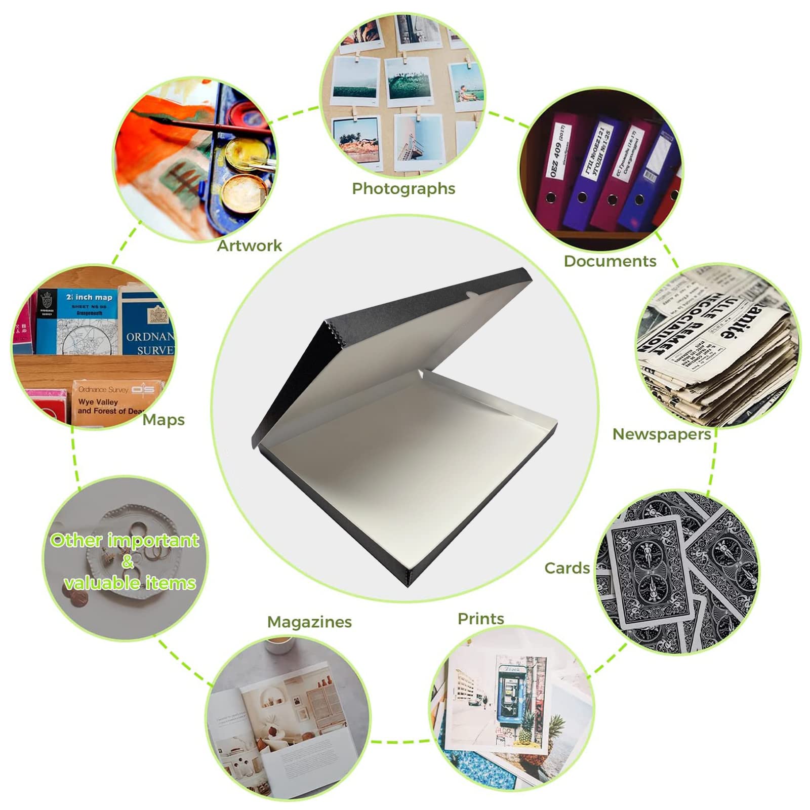 Great use for files, prints, photos, art. This storage box will preserve your items. Including vintage products such as baseball cards, holiday and birthday cards, notes, and more