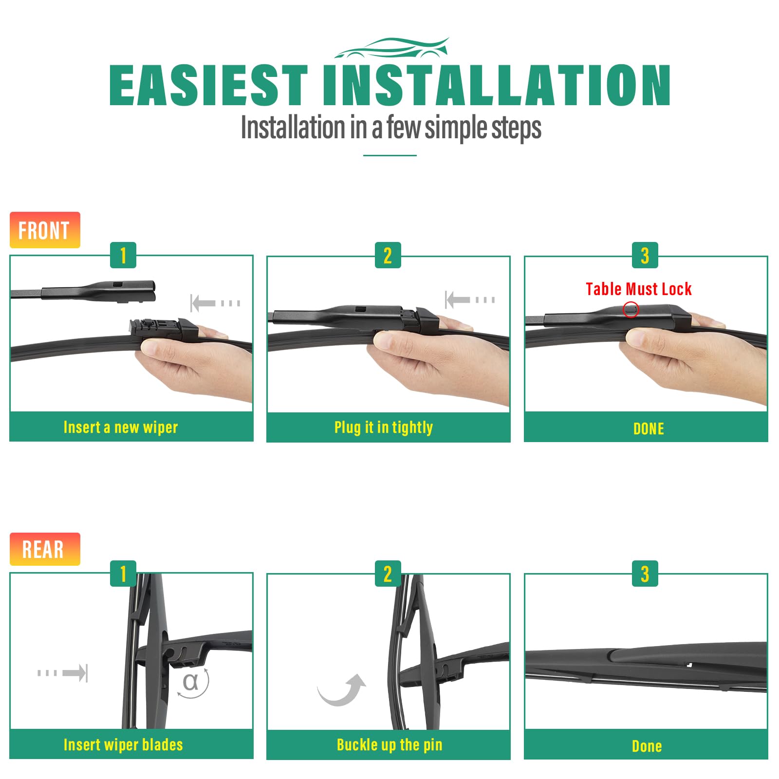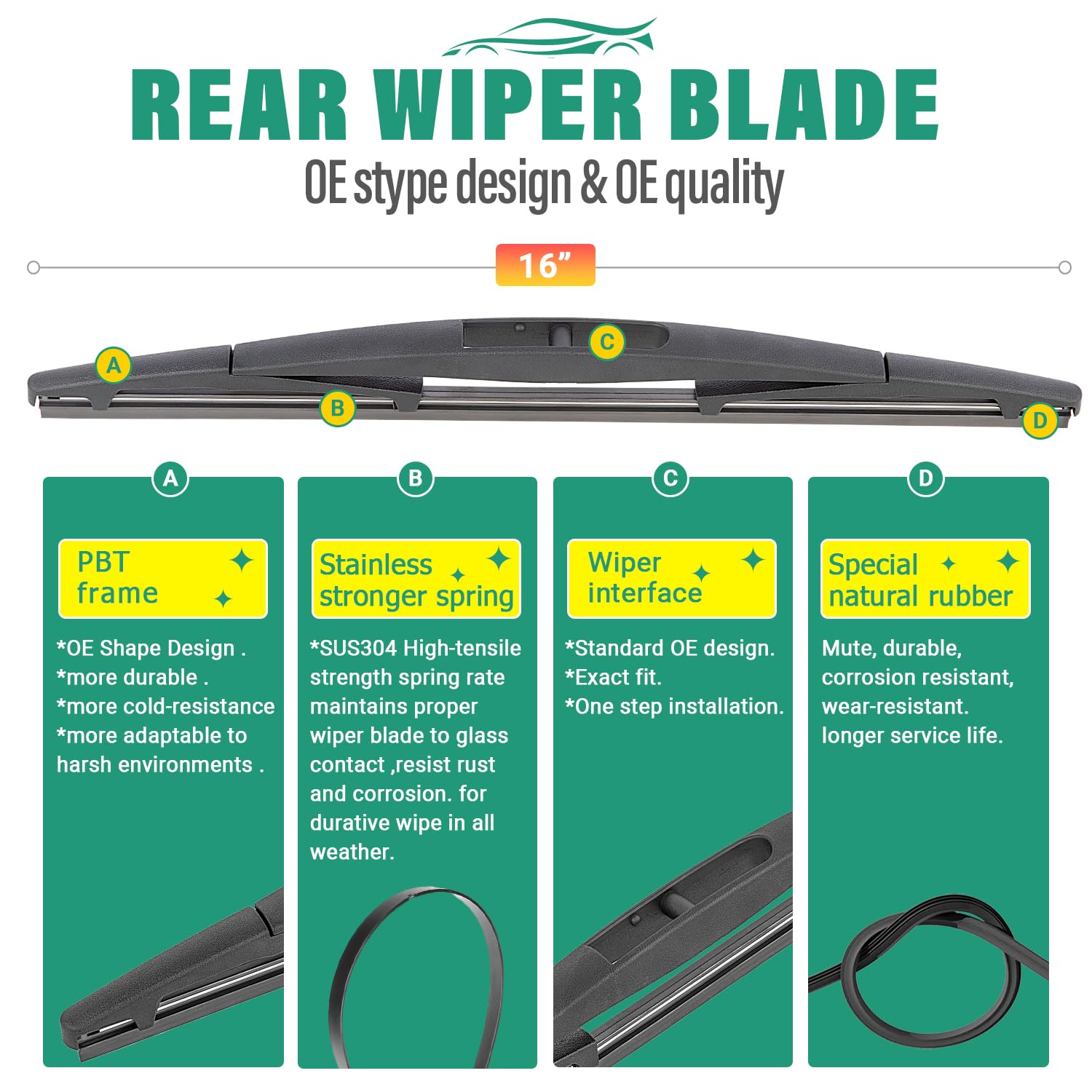 [Super Clear Wipers]: High-quality rubber blade ensures efficient and streak-free wiping.