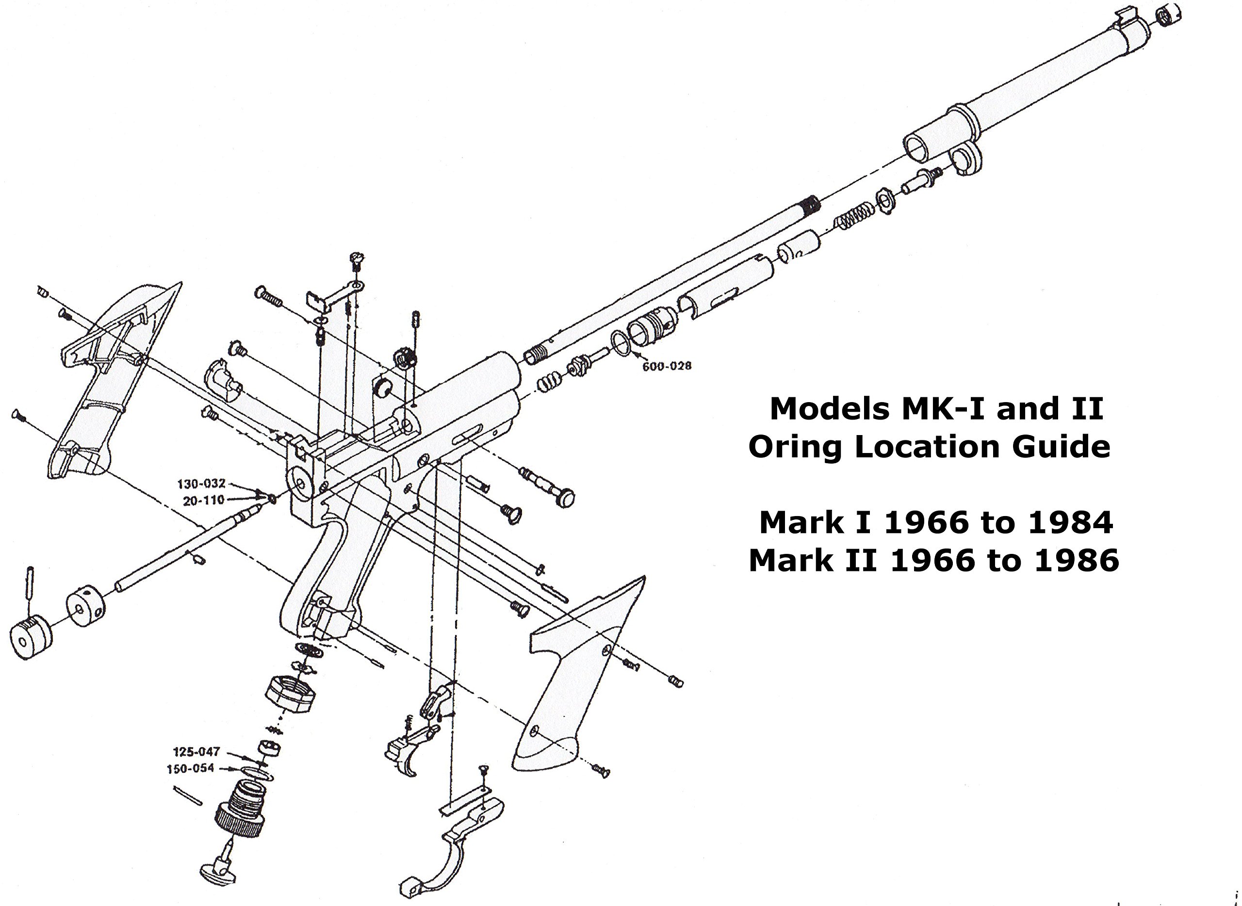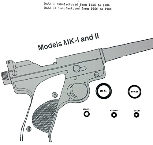 Here is a seal kit that is correct for the Crosman Mark I & Mark II pistols. It includes the most common ORings that are needed to bring your pistol back to life. The kit includes: (1) Tube Cap/Piercing Knob O-Ring 150-54 (1) Valve Body O-Ring 600-28 (1) Piercing Pin O-Ring 125-047 (2) Breech Bolt O-Ring ( Mark II .177 CAL 20-110 small ) ( Mark I .22 CAL 130-032 large) O-rings are Buna N -70