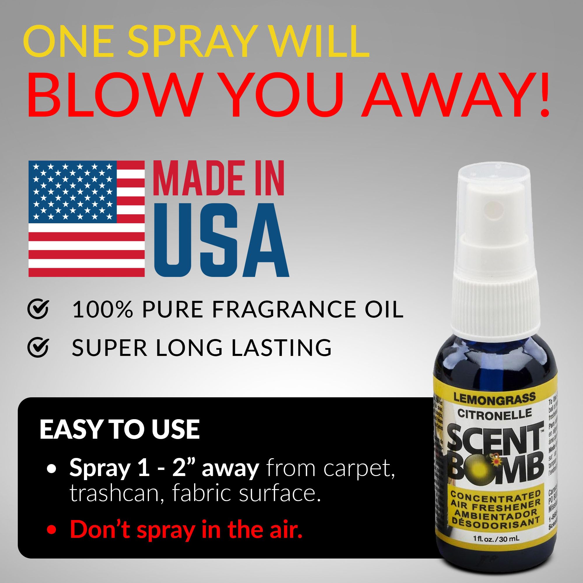 EFFORTLESS FRESHNESS: Achieve a refreshingly clean atmosphere with just one quick spray. Scent Bomb combines powerful odor-fighting capabilities with sophisticated scents, making it easy to maintain a welcoming ambiance with minimal effort.