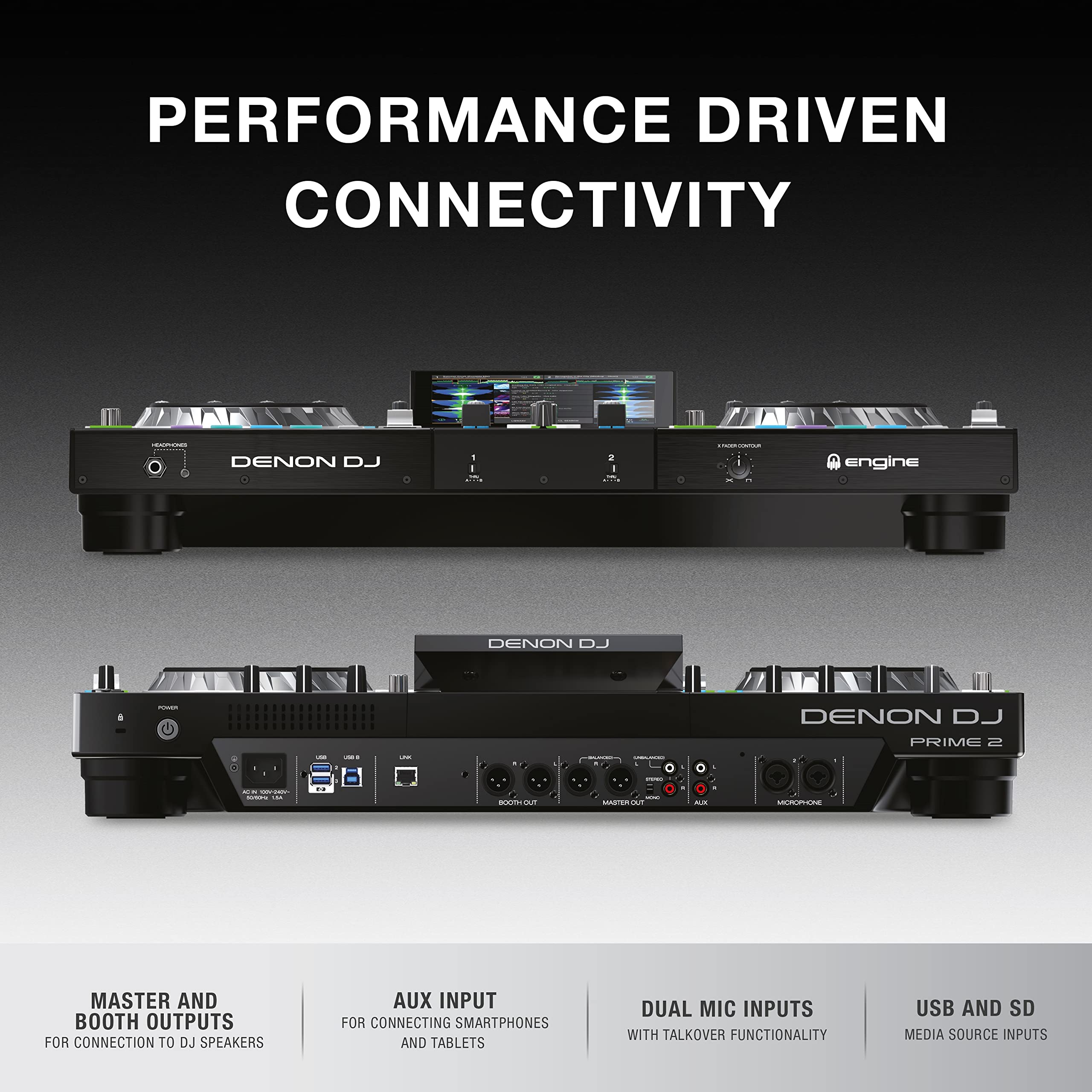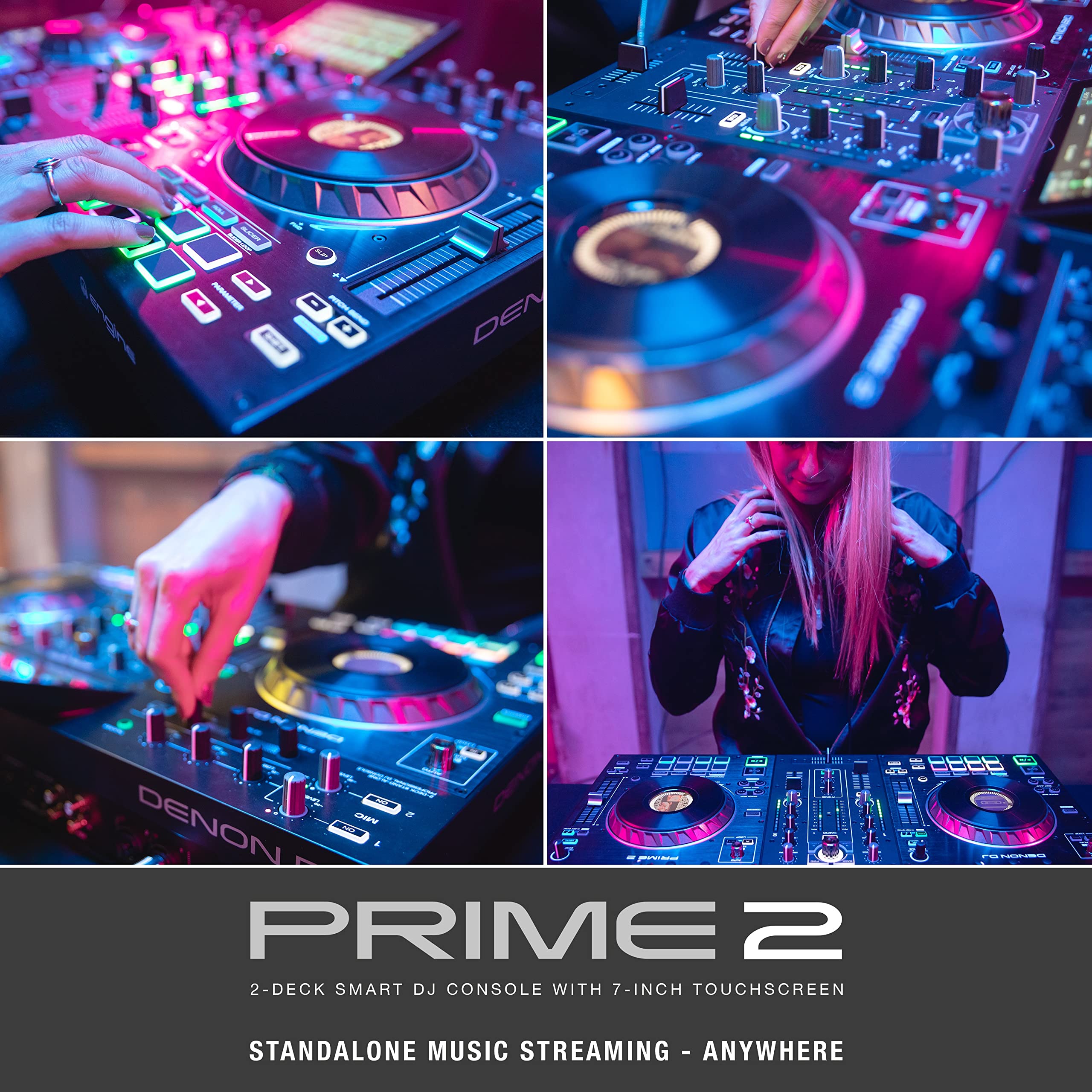 Introducing PRIME 2 Denon DJ’s Essential Mobile DJ Workhorse Designed and engineered for the professional mobile, club and event DJ, PRIME 2 is a 2 deck, standalone smart DJ console powered by ENGINE OS and is WiFi enabled for premier music streaming services with no need for a laptop computer. Embracing the future of DJ performance and technology, it features a 7 inch multi touch, multi gesture touch screen, extensive media source connectivity, 6 inch jog wheels with color displays, plus expressive EQ, DJ FX and creative workflow controls. PRIME 2 is your essential mobile DJ workhorse. Touch and Feel Your Music PRIME 2’s 7’ touchscreen gives you a high definition, multi gesture experience, just like using your smartphone or tablet. Navigate your collection, finger swipe to load tracks, instantly search through large music libraries, and even rearrange your playlists and songs just on the screen itself. Change things up by flipping your waveform playback view from vertical to horizontal and also select and monitor a number of other essential DJ workflow features at the touch of a finger. Music Nonstop Access and play your digital music via the 3 x USB and 1 x SD inputs and even large terabyte music collections using PRIME 2’s built in internal 2.5” HDD bay. Want to record your DJ set for an important gig? No problem; PRIME 2 has you covered, able to record directly to any connected media source, even the one you’re playing from. Any changes to track hot cues, loops and performance preferences are also saved to your source media drive for instant recall at a later gig. Standalone Wireless Music Streaming Anywhere Using your mobile data or either a venue’s WiFi or wired internet connection, you can stream music from TIDAL with its catalog of over 60+ million songs, just using PRIME 2 and with no laptop needed. Never be caught out again for that elusive song request, having literally the world’s music, exclusive playlists and curated content at your fingertips! More exciting streaming partners will be available soon. Pristine Audio Powerful Connectivity PRIME 2 features Denon DJ’s renowned 24 bit/48kHz pristine audio quality and enough rear panel pro connectivity to cover everything from a house party, a mobile gig, club or even mainstage event. Add PRIME 2’s StagelinQ connection into the mix and you’ll be ready for creating easy and dynamic lighting and video shows too, with SoundSwitch and Resolume control. Craft Your DJ Mix PRIME 2 has all the creative, hands on features and power you’d need for any style of DJing. With 2 (100mm) line faders, contour controlled crossfader and 6” capacitive touch jog wheels with HD color displays (showing song / DJ artwork plus loop / track status info too). With expressive 3 band EQ, you can shape and blend your mix to sonic perfection then take the music into another dimension using PRIME 2’s dual FX modules (visualized on the main 7” display) plus Filter control for added audio manipulation. With your media player, tablet or smart phone, add a third music source into your live show using PRIME 2’s dedicated RCA Auxiliary audio input. Take Your Sounds Further PRIME 2 will inspire even the most dextrous and creative energies inside your DJing mind. It brings 8 ultra responsive trigger pads (per channel) for hot cue juggling, looping and beat rolls plus a class leading timestretch and key shift/sync feature to radically change a songs tempo and musical key ‘Open Format’ DJing just got a whole lot more exciting, and easier! Dual Microphone Power Accept no sacrifice of your line faders, with PRIME 2’s two independent, level controlled mic channels, both with XLR (1/4” combo) inputs. Double up with a DJ partner or bring that enthusiastic Bride or party animal into the show, using the handy talk over feature so you can get on with the serious business, of ‘fun’! PRIME 2 has both a mini and full size headphone jack input too, for those nights when you might forget your cable adapter! Powered by ENGINE OS PRIME 2 has Denon DJ’s ENGINE OS under the hood to take care of lightning fast operations during your DJ performance. With continuous firmware upgrades keeping you empowered with the newest, forward thinking features, ENGINE OS will keep your music flowing expressively. ENGINE PRIME librarian software (Mac / PC) is your music library and set preparation tool which syncs your other music collections, including iTunes, Serato DJ, Traktor and Rekordbox. Using just PRIME 2 (yes, you got it, no computer needed), you can also import a full Rekordbox collection direct from a media source, internally analysed (including playlists, hot cues and loops) within the unit itself