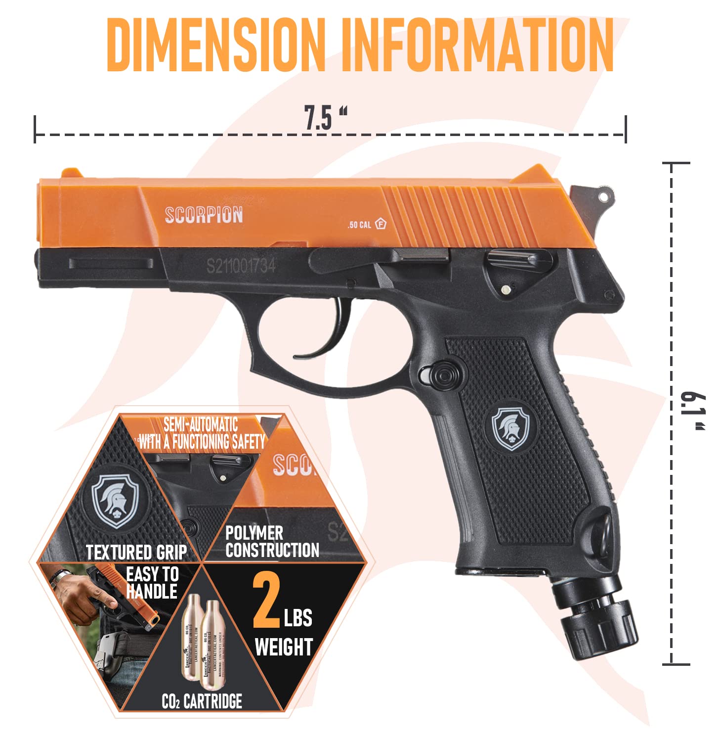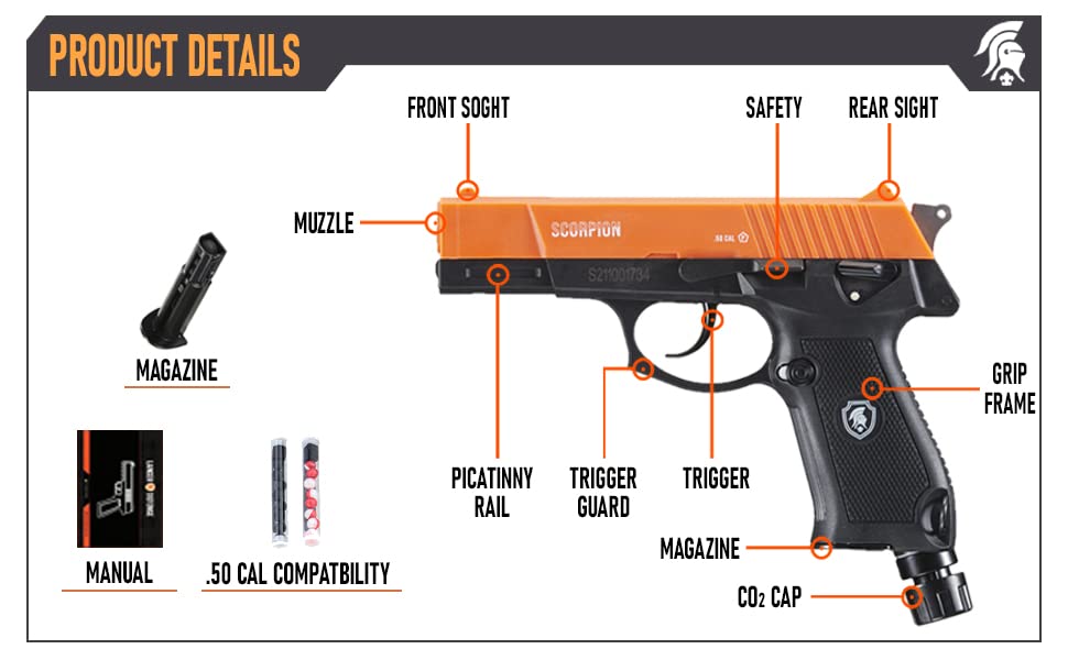 Shoots .50 caliber pepper rounds, rubber balls, or powder balls