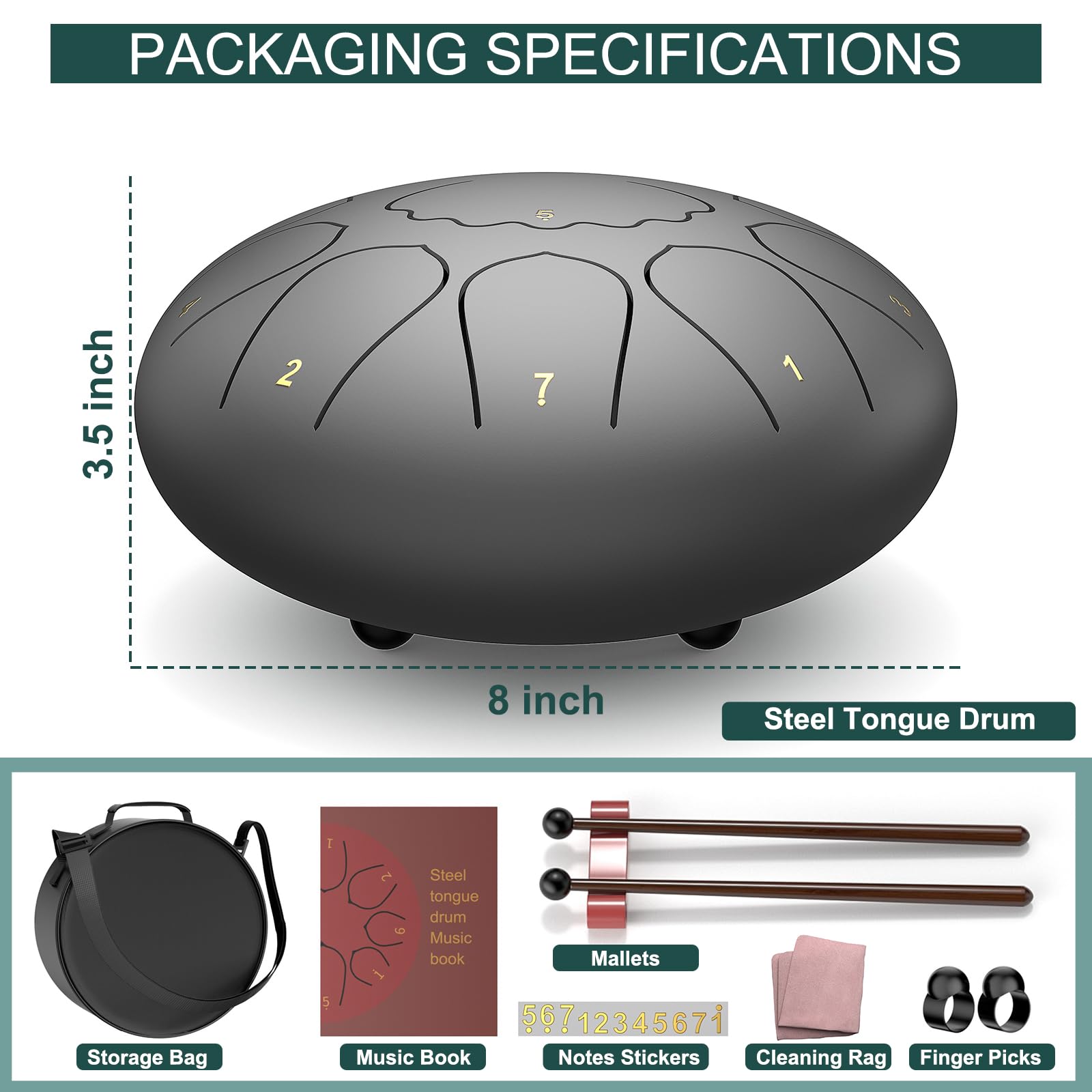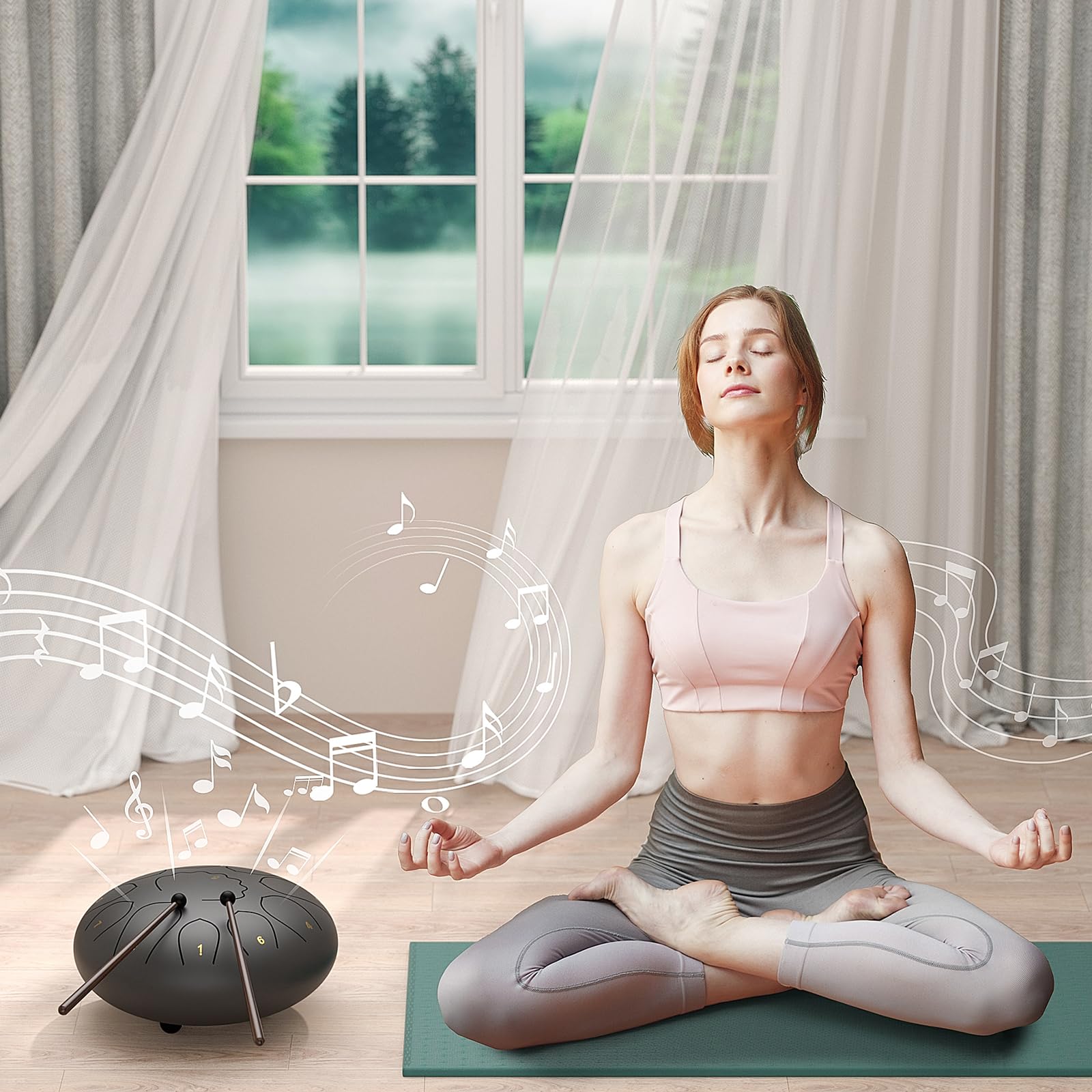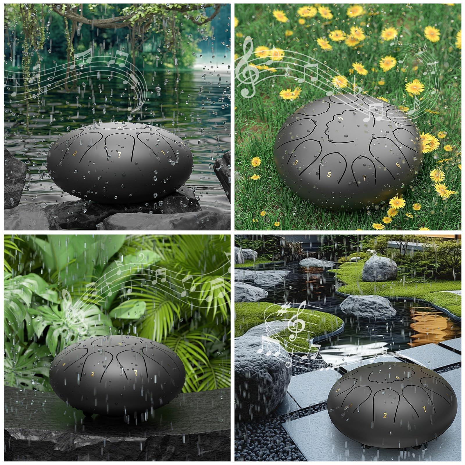 HIGH-QUALITY CRAFTSMANSHIP: Expertly crafted, this 8-inch chakra drum for rain is made from titanium alloy and coated with paint for exceptional corrosion and rust resistance, and can withstand various weather conditions. Each steel tongue drum is hand-tuned and precisely cut to ensure achieve accurate tones and harmonies.