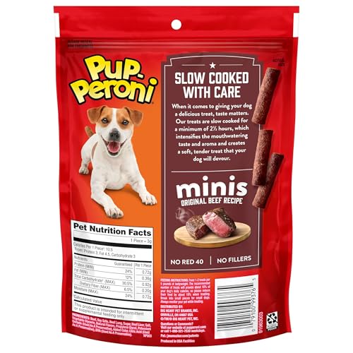 Pup-Peroni Minis Original Beef Flavor dog snacks let you give your dog bite size rewards with big beefy flavor they’ll love. These soft dog treats are made with real beef as the number one ingredient to make any treating moment more delicious. Their miniature size is perfect for small dogs, but Minis can be treated to dogs of all shapes and sizes, especially when training them to do awesome tricks. The best part? These mouthwatering morsels are made with no artificial flavors and no FD&C colors, including no Red 40. Pick up a bag (or two) to be your best friend’s best friend.