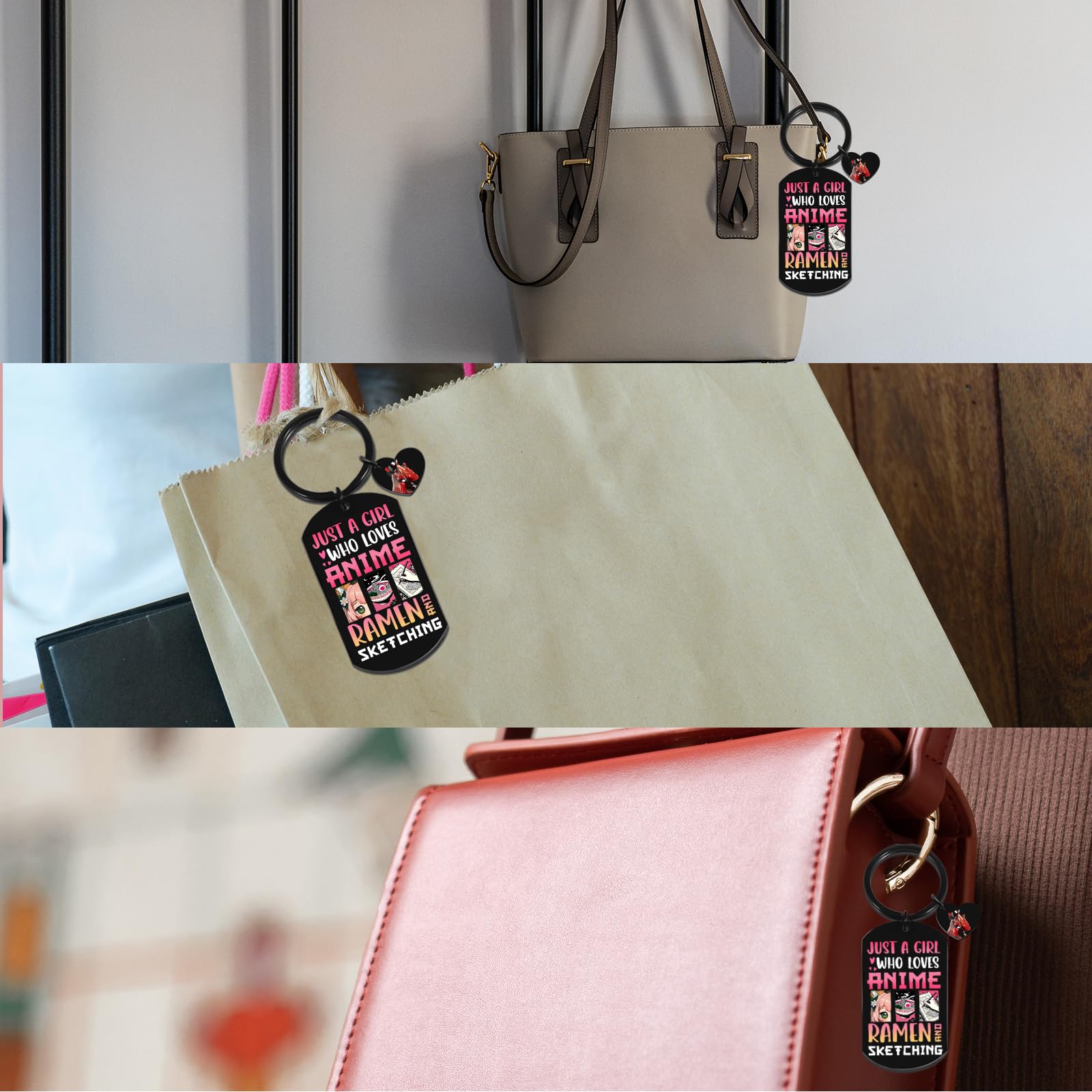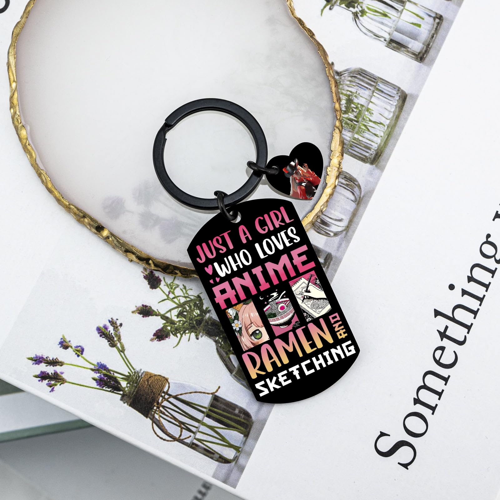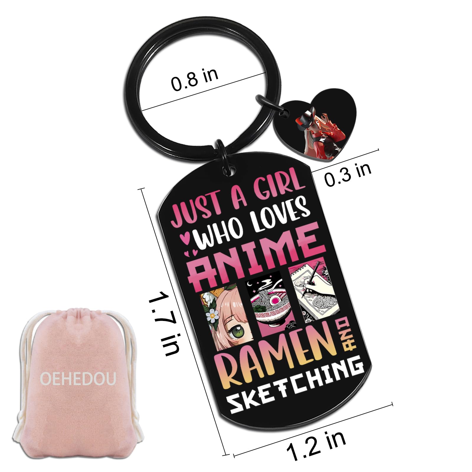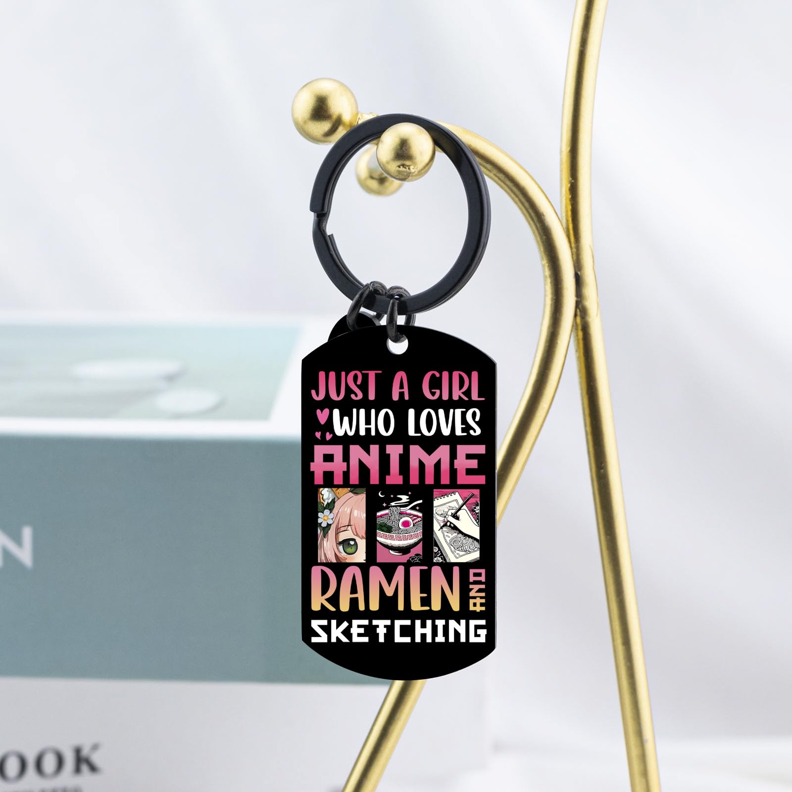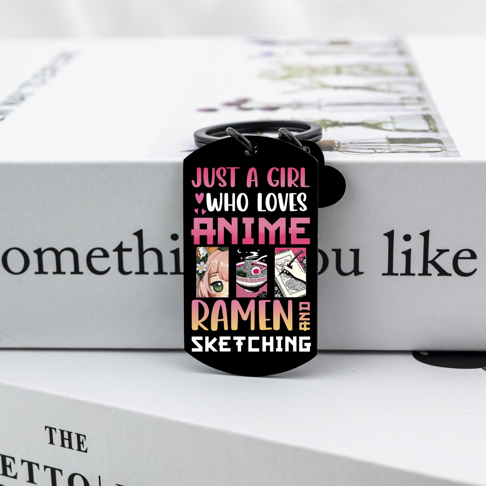Anime Gifts For Girls, Just A Girl Who Loves Anime, Anime Stuff For Girls -- Printed With: “ Just A Girl Who Loves Anime Ramen And Sketching” , This Funny Anime Keychain Makes a Great Gift For Every Anime Lover And Anime Fan. Anime Gift For Girls, Teen Boy, Teen Girl, Will Love The Cool Anime Merch