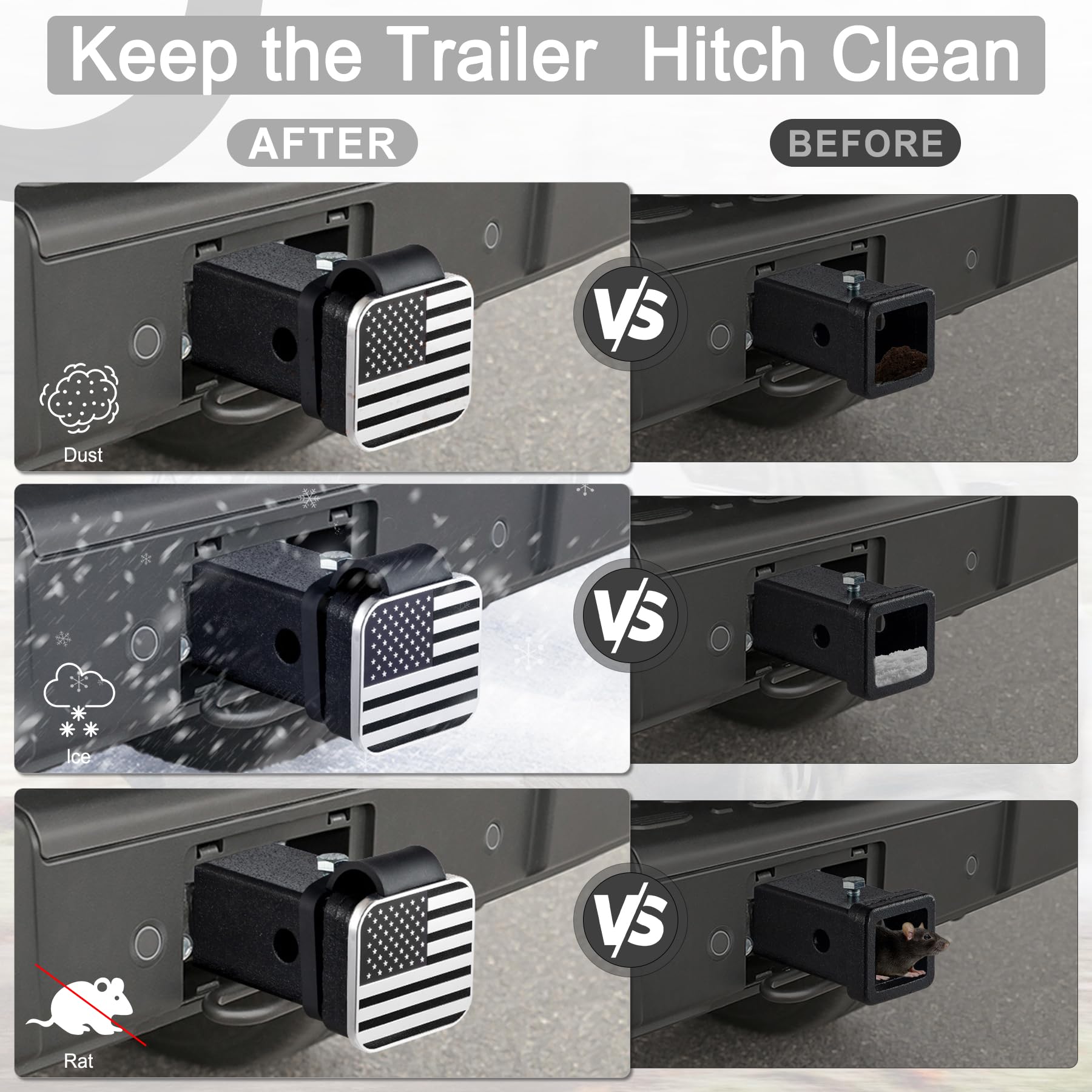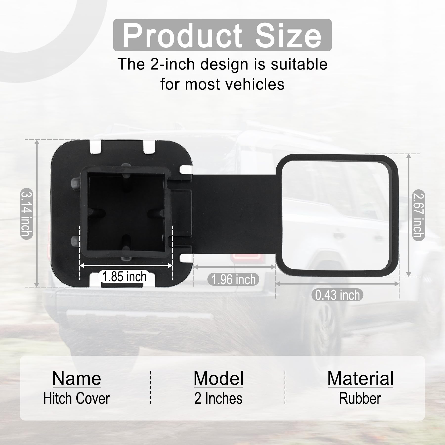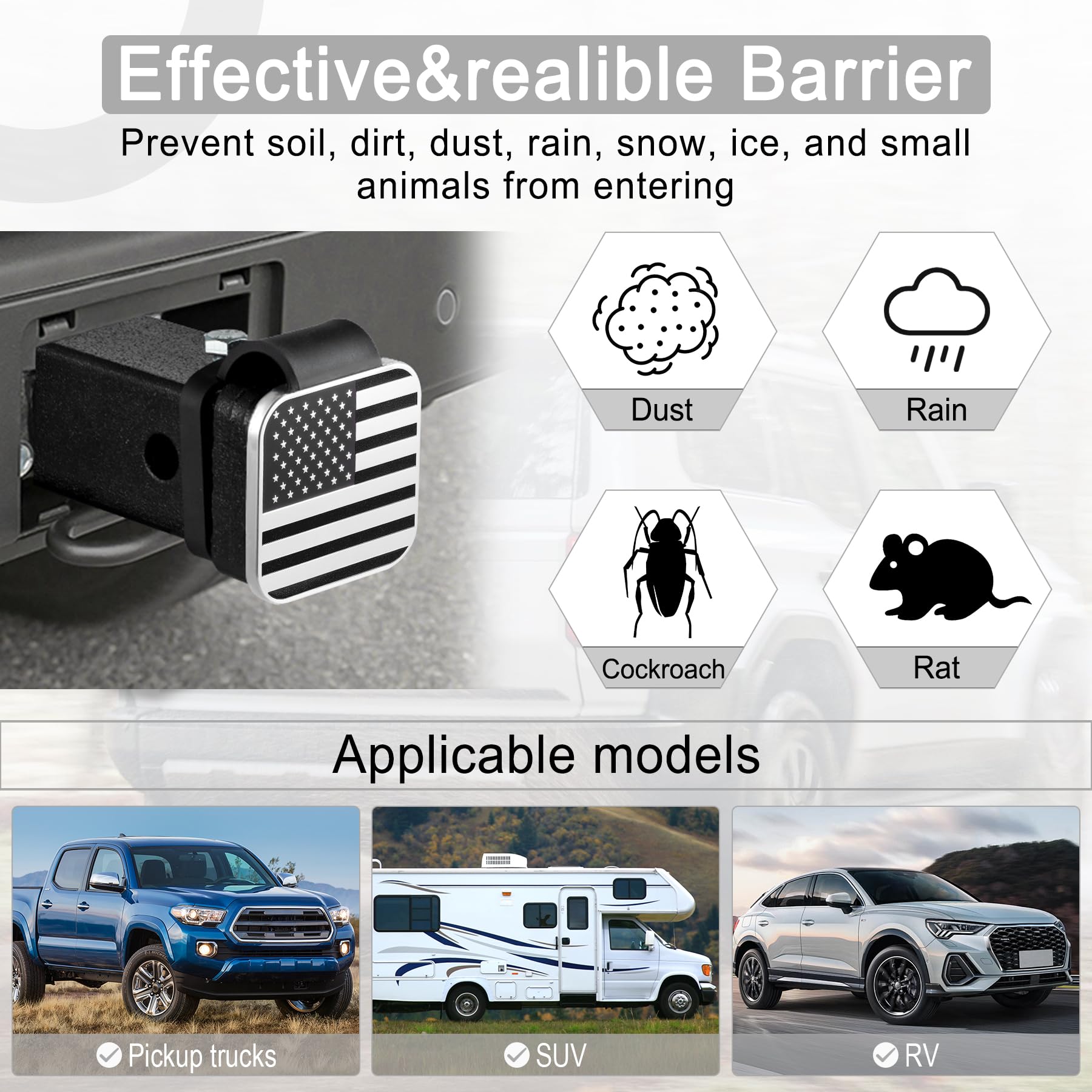 【Easy Install】This Tow Hitch Cover is designed to fit standard 4 inch trailer hitch receivers. Compatible with most models hitch receivers. Keep your trailer hitch receiver tube protected and clean against water, debris, dirt and rust when not towing.