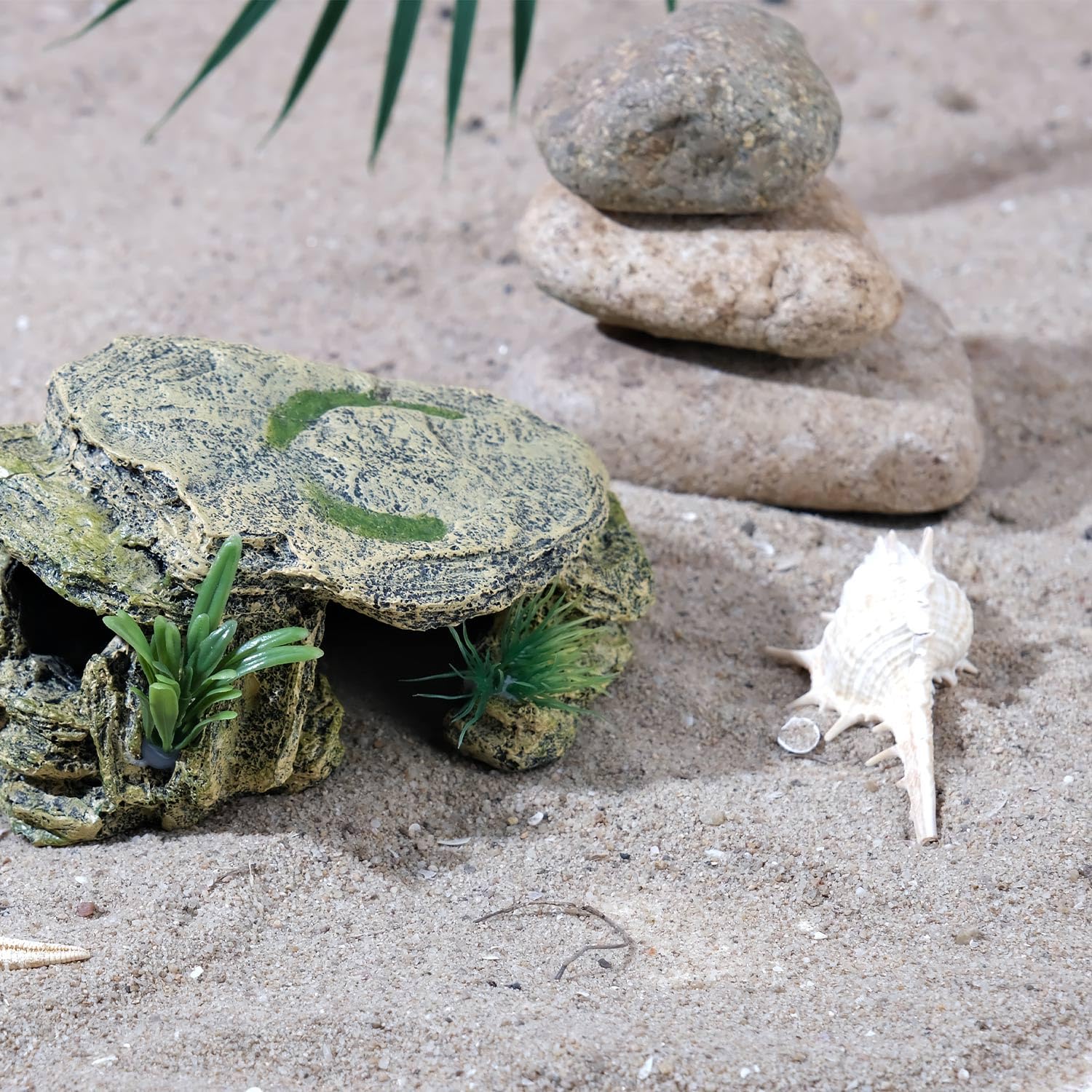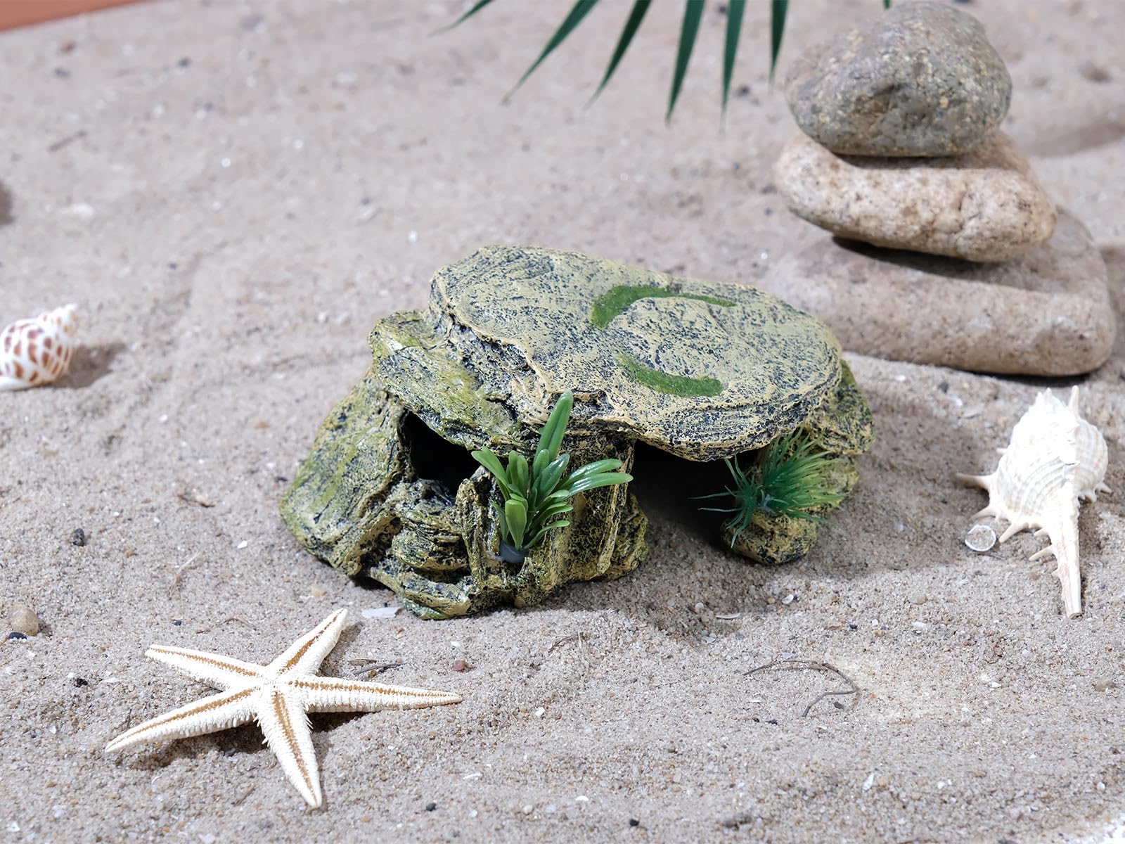 Quality & Safe Material - The reptile hideout is made of non-toxic resin. It is safe to place in fresh water and salt water, dry and humid place without harming your pet and will not change shape or color over time.