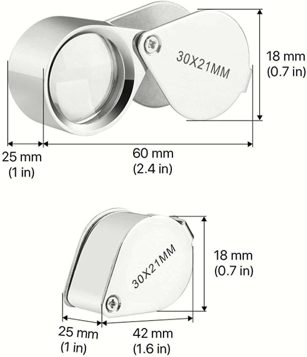 PACKAGE CONTENT: 1pcs 30 x 21mm Jeweler's Loupe, 1x Original package box; Make jeweler loop magnifier very portable, Just pull out the jewelers loop to use, and put it back after using it, Very conveniently