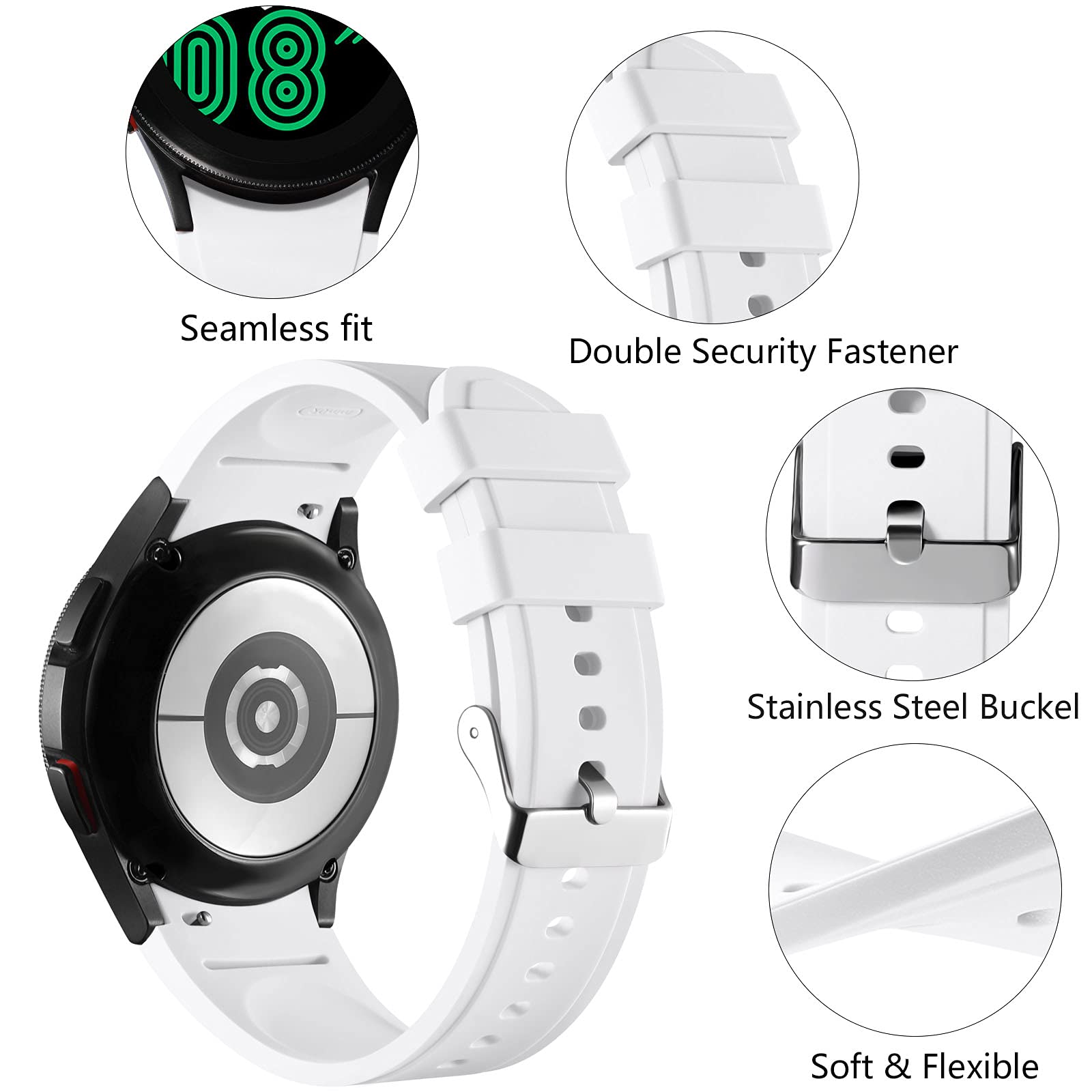 【Comfortable & Durable】The sport straps compatible with Samsung smartwatch are made of premium soft silicone rubber, skin-friendly and water resistance, anti-allergic and no fading, bring you a comfortable wearing experience. Premium Watch Buckle design, 20mm quick release pin easy to install and remove, NO tools required!