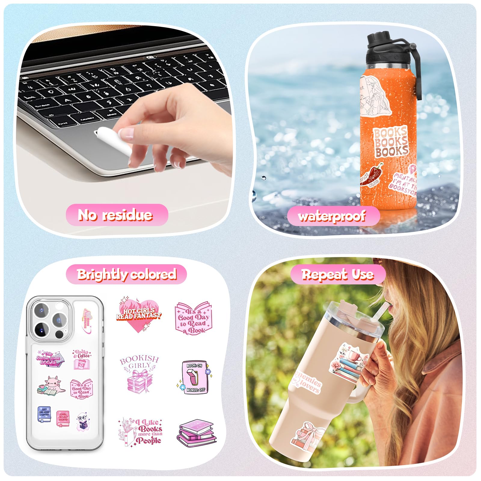 Kindle Book Stickers: This pack contains 200 diverse and unique stickers, perfect for decorating your Kindle, iPad, laptop, water bottles, journals, and more. With a variety of unique designs, these stickers let you personalize your favorite items and express your love for reading.