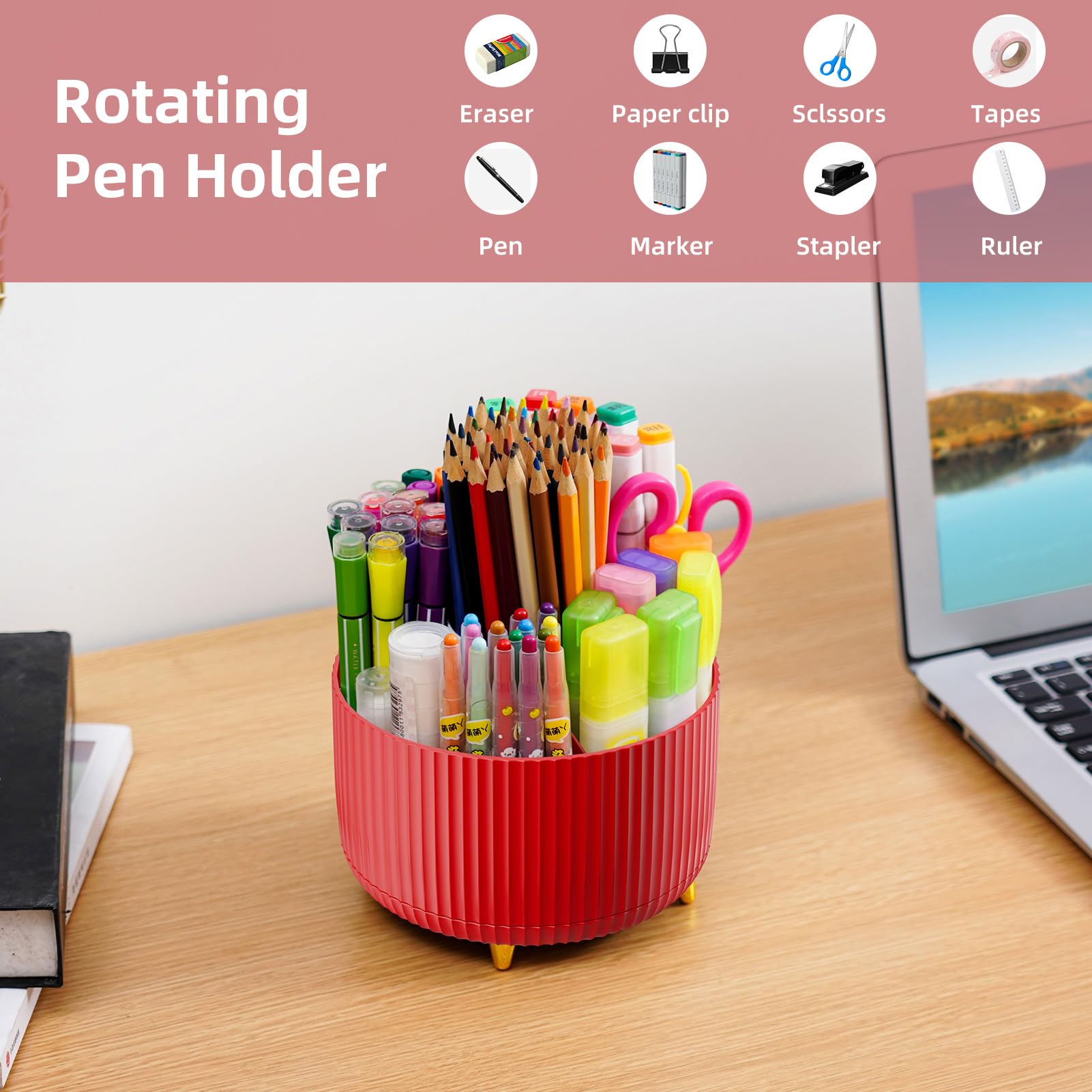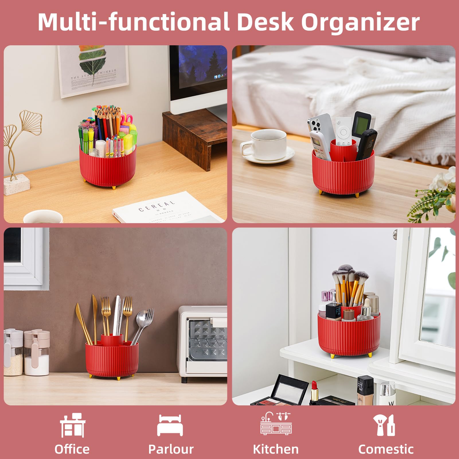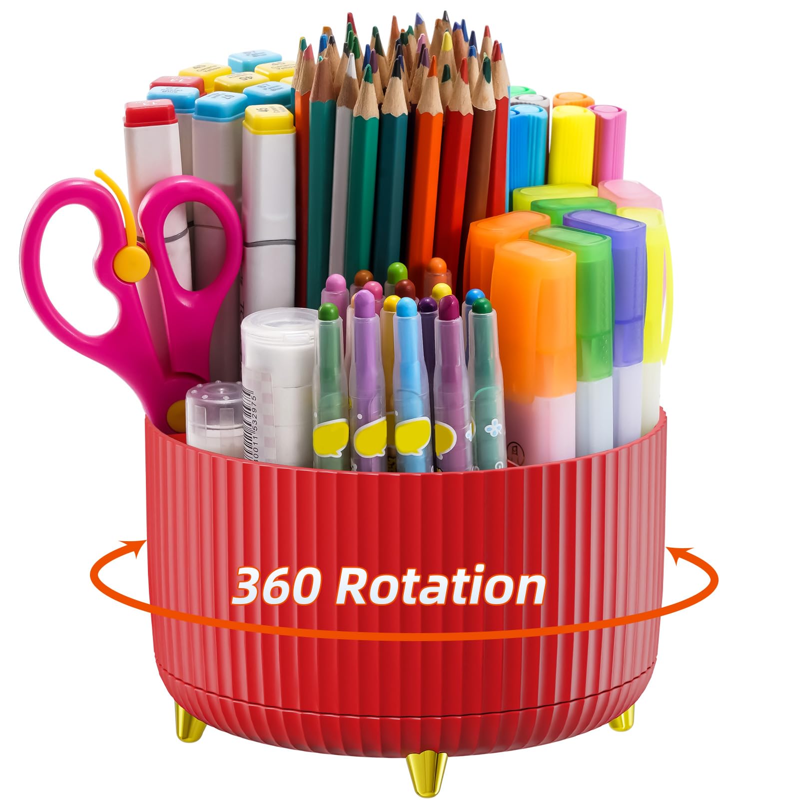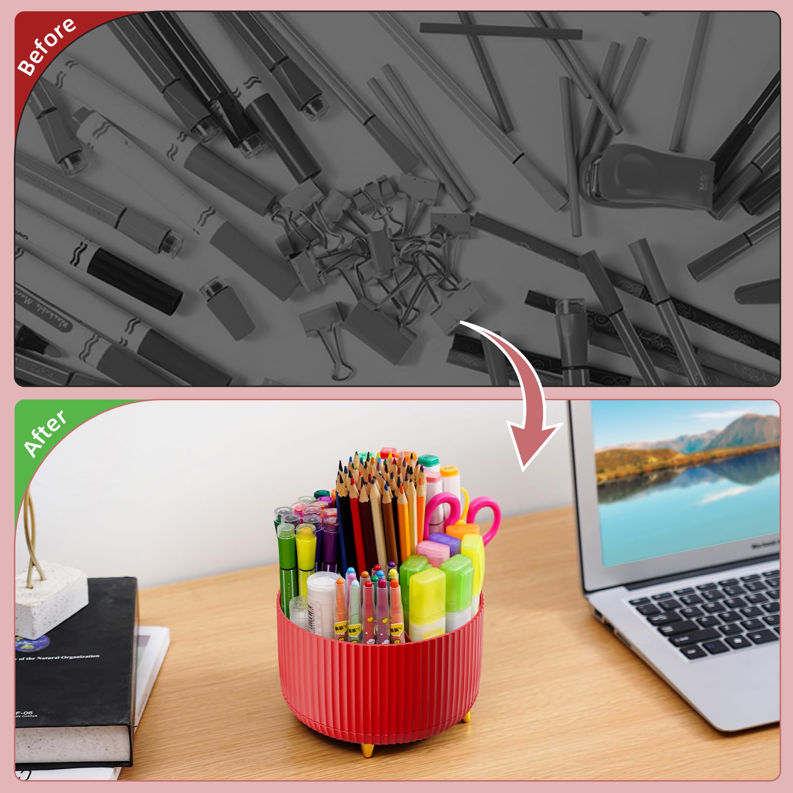 【Multipurpose Desktop Organizer】: This rotating storage organizer is perfect for pencils, cosmetics, bathroom necessities, toiletries, and even kitchen utensils. Try it in your craft room, playroom, laundry/utility room, and even inside bathroom cabinets or under the sink; Store extra office supplies like painting pens, correction tape, scissors, TV Remote, and more; Even headphones or a charger will no longer be lying around in the future! Maximize your vertical space and keep your desk clear