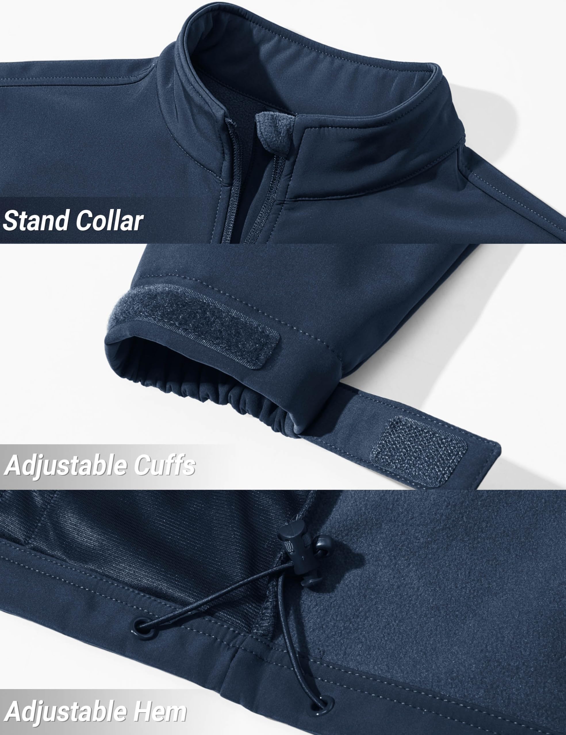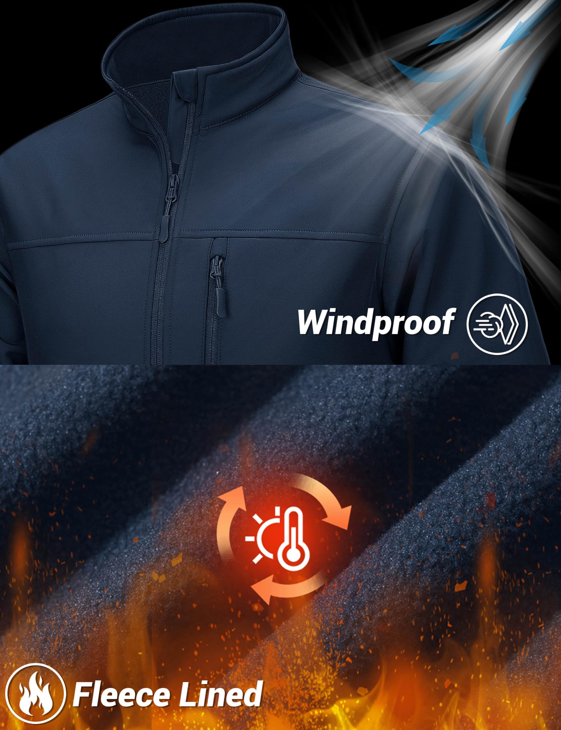 Fleece Lined Interior——The mens jacket soft brushed fleece lining retains warmth with stretch fabric for mobility. The cozy fleece insulation adds warmth without bulk, making it ideal for active or casual wear.