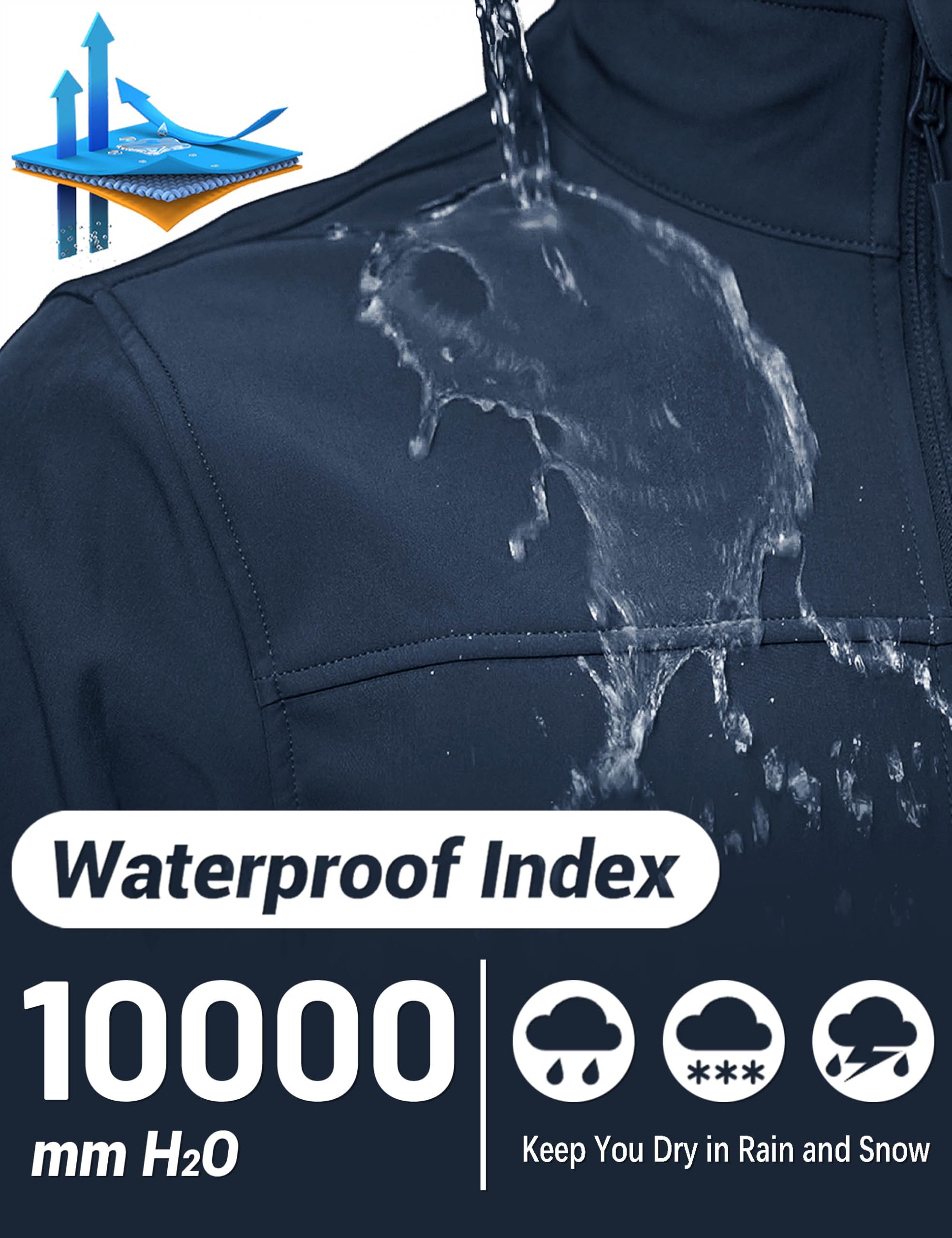 Waterproof & Breathable——TACVASEN mens softshell jacket features a high-performance waterproof fabric (10,000mm rating) and a breathable lining (5,000g/m²/24hr) to block rain while keeping you dry and comfortable.