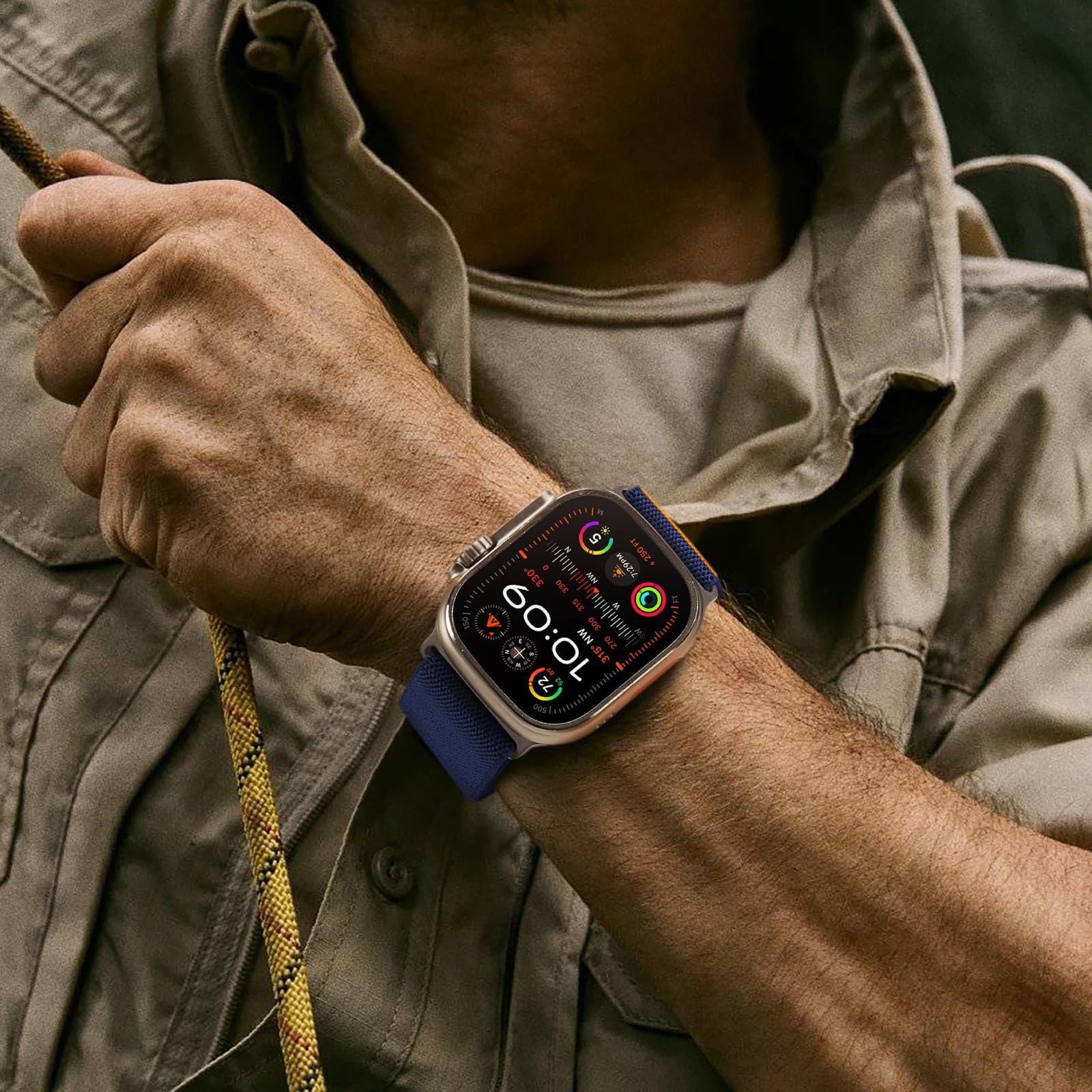 Built to Last: Performance-Ready Durability: Tired of apple watch bands for men that stretch out or fray after weeks? Our apple watch ultra band men features ultra-resilient nylon fabric with reinforced stitching that resists scratches, dirt, and fading for years of performance-ready wear; densely stitched resizing loops maintain their shape wash after wash, delivering consistent fit retention through intense workouts, outdoor adventures, and daily use