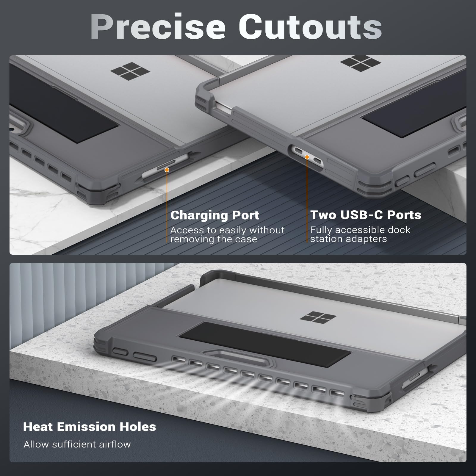 COMPATIBILITY: Delicate case with precise cutout for Microsoft Surface Pro 11, Surface Pro 10, Surface Pro 9 ONLY, which provides you easy access to all controls and allows the tablet to accept a dock station adapter in the two usb-c ports without taking off the case. NOT FIT other Surface Pro tablets or any other tablet series. Please check the tablet model before your purchase.
