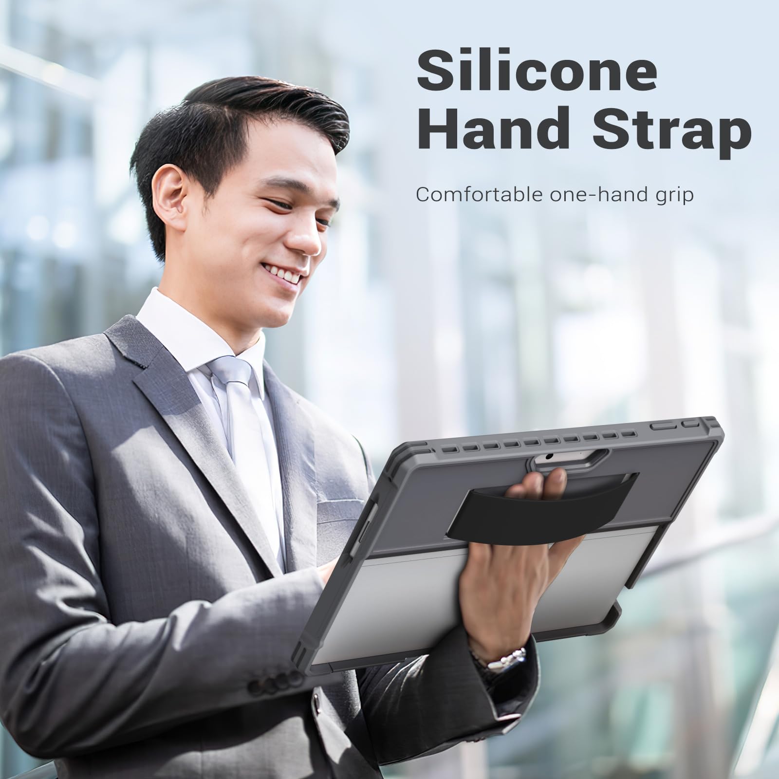 FUNCTIONAL HANDSTRAP: This Microsoft Surface Pro 11, Pro10, Pro 9 cover and Surface Pro 10 cover has a durable and snug elastic hand strap for ensuring a safe and comfortable hand use experience. With the elastic hand strap for one-hand use, you can grip your tablet more firmly and conveniently in different situations, such as on the bus or subway or in the library or coffee shop, without worries about accidental falling.
