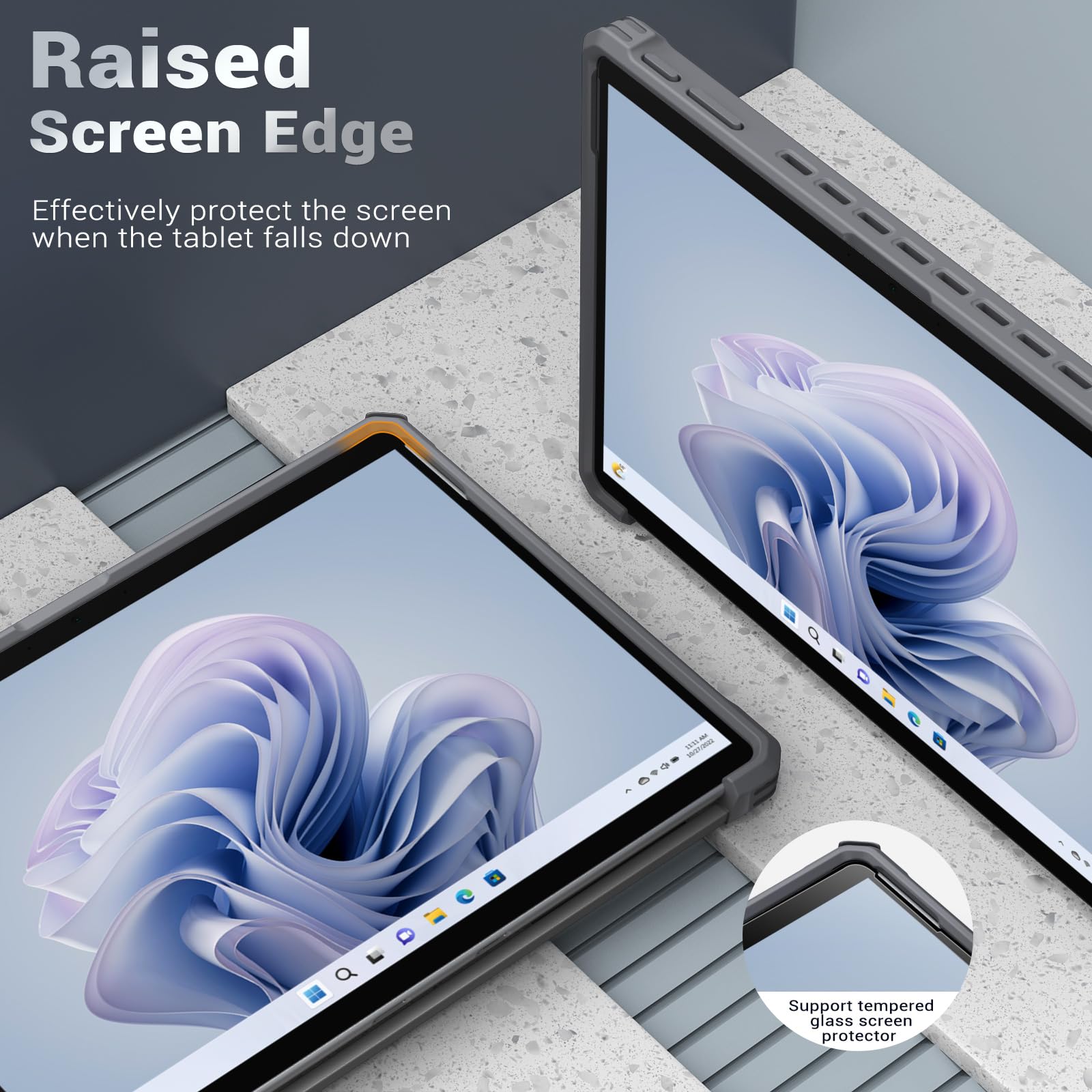 FRIENDLY TO USE WITH SCREEN PROTECTOR: The raised design around the tablet screen protects it efficiently from accidental dropping and breaking. It's also convenient for applying different kinds of screen protector on Surface Pro 10 and Pro 9 screen.