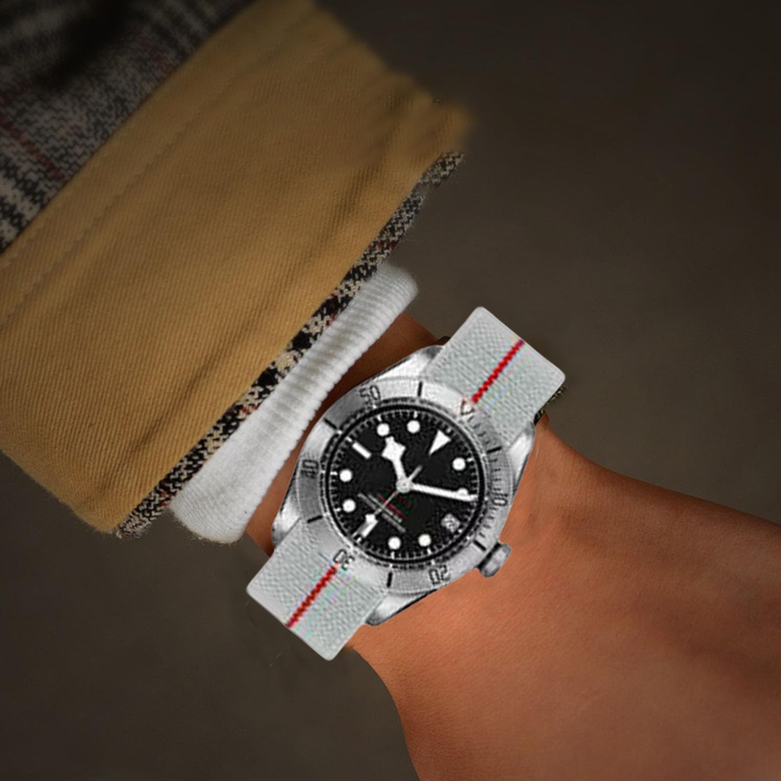 【Premium Quality】Our French Troops paratrooper-style elastic nylon strap is made from super stretchy elastic to ensure a perfect fit for any wrist size. This material has an exceptionally tight yet breathable, soft Twill Weave of polyester and rubber, with reinforced edges that prevents unraveling and shape change when stretched. Special Design Hook Buckle. It is very durable, dirt and get wet resistant features.