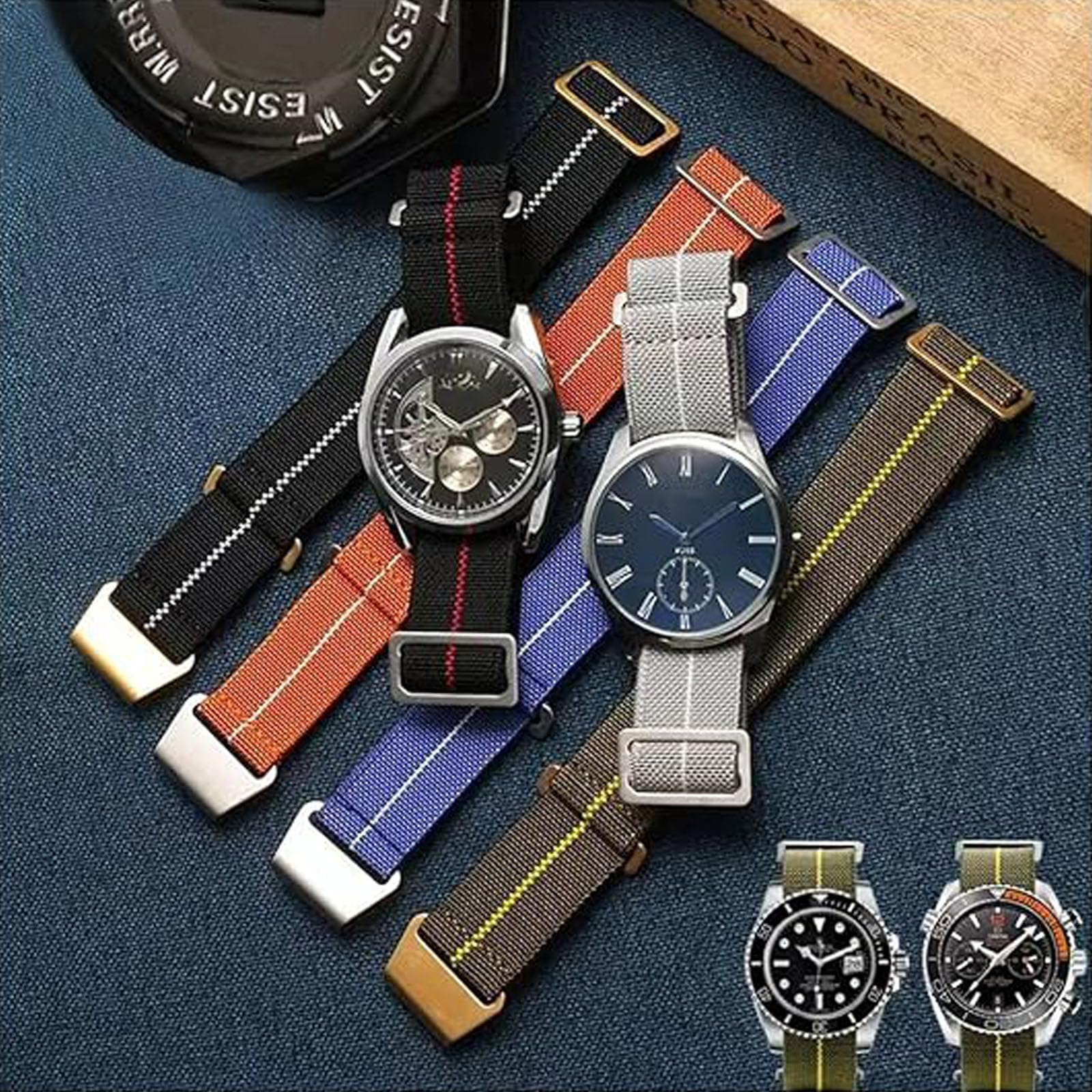 【Compatible For】This french marine nationale elastic nylon watch straps suitable for traditional watches with 18/20/22mm lugs and design available for 45 colors in silver & black buckle.Work with most of watch brands. Please measure width of watch lug at connection point before ordering,according to your.