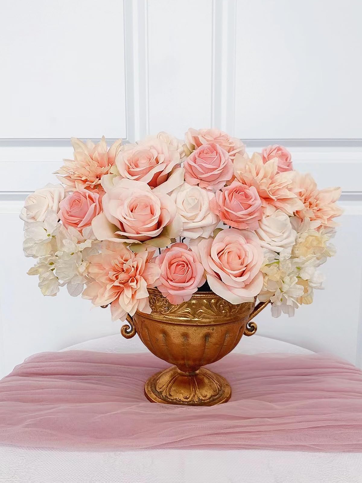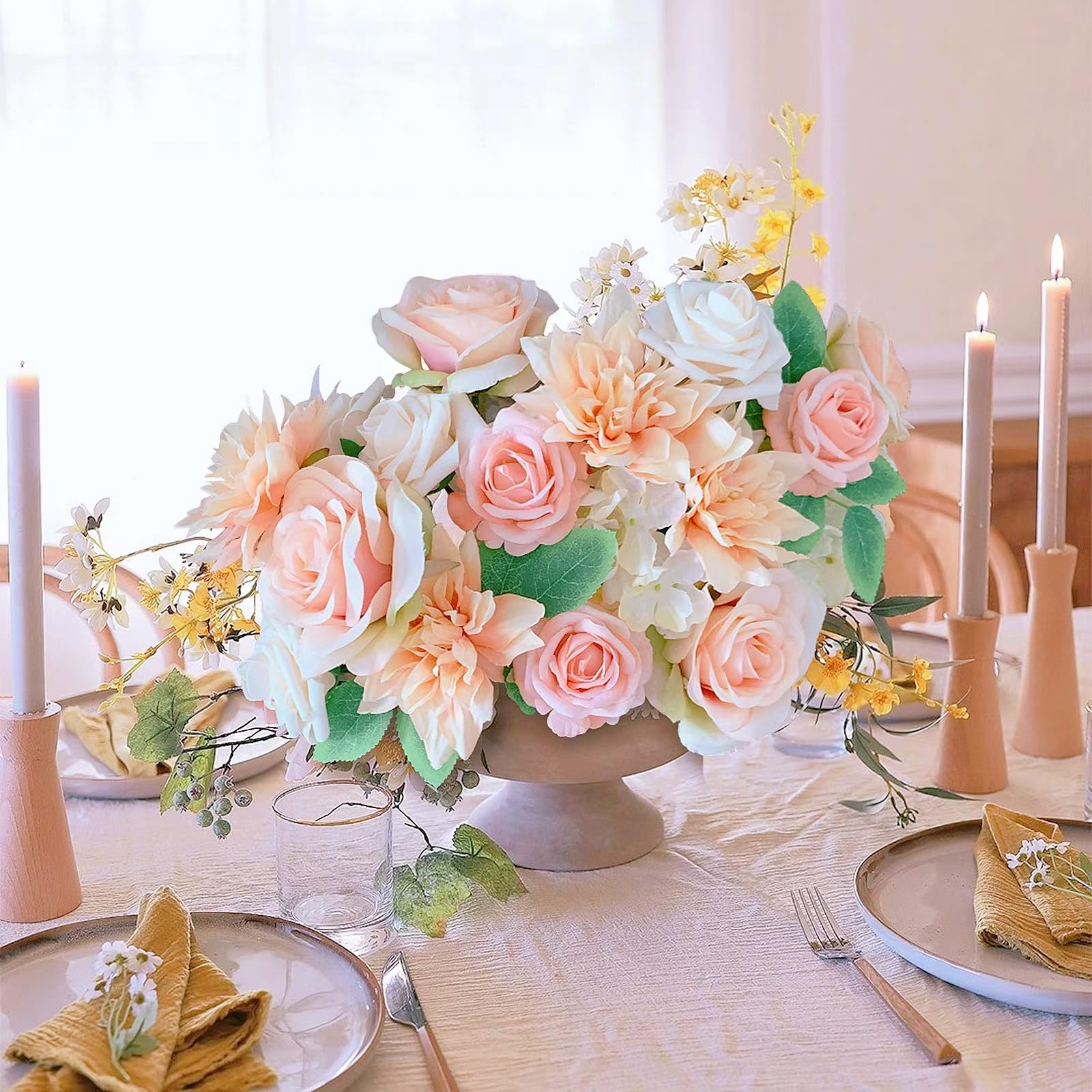 Multipurpose: Peach roses artificial flowers for decoration are the perfect base for wedding table centerpieces and faux floral arrangements. Easily style the pink artificial flowers in bouquet, wreath, garlands, cake decorating, arch, vase, backdrop