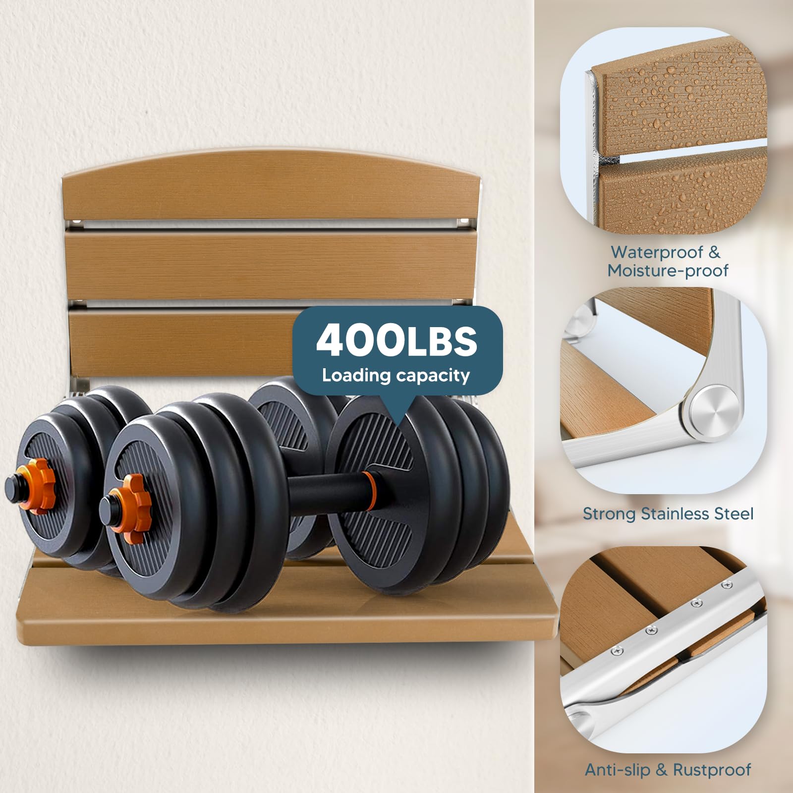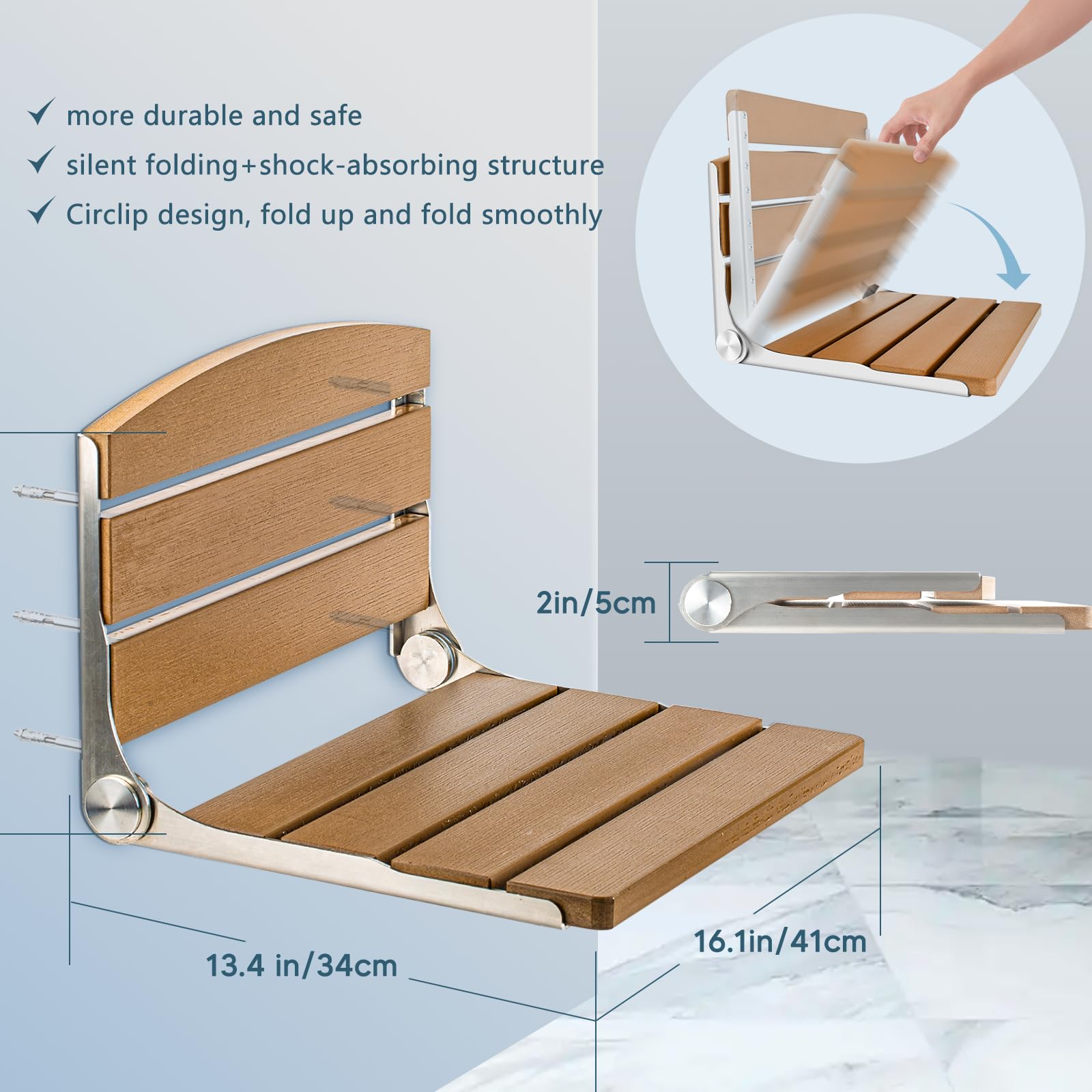 【Long-Lasting Durability】Crafted from stainless steel and waterproof poly lumber, this wall mount shower seat offers superior resistance to water, rust, and wear compared to teak shower seat. It dries quickly and is effortless to wipe down and clean.