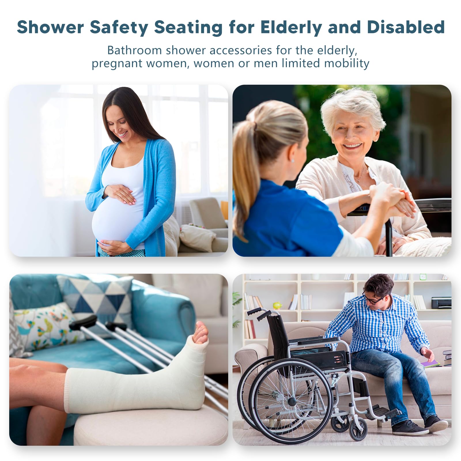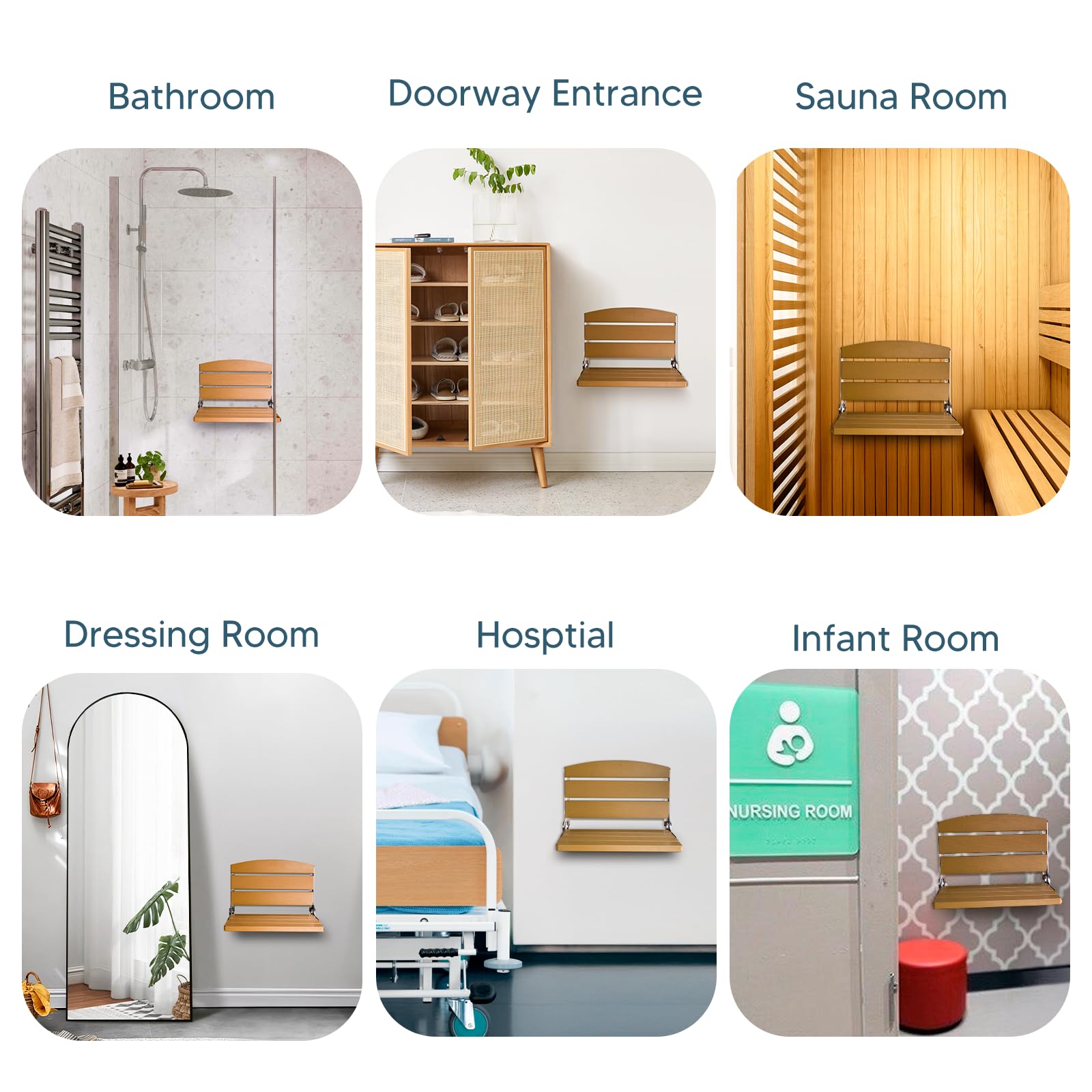 【Wide Applicability】Ideal for users of all ages—especially the elderly, disabled, and pregnant individuals. This fold down shower seat wall mounted is perfect for use in the bathroom for bathing children and pets. It can also be installed in hospital corridors, porches, living rooms, balconies, changing rooms, and more.