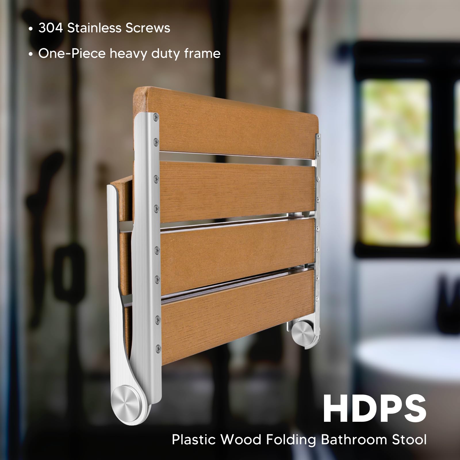 Folding Shower Seat:Hdps Wood + Stainless Steel