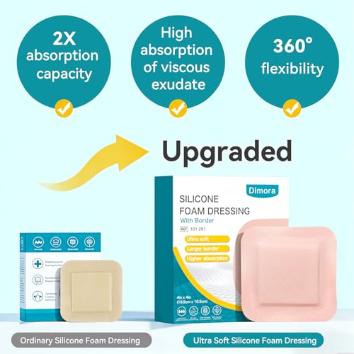 Upgraded Ultra Soft Silicone Foam for Better Wound Cushioning: The item uses 2mm ultra-soft foam layer, which is softer than regular foam dressings, provides better cushioning and protection for the wound site, and reduced friction and pain for longer-lasting comfort.