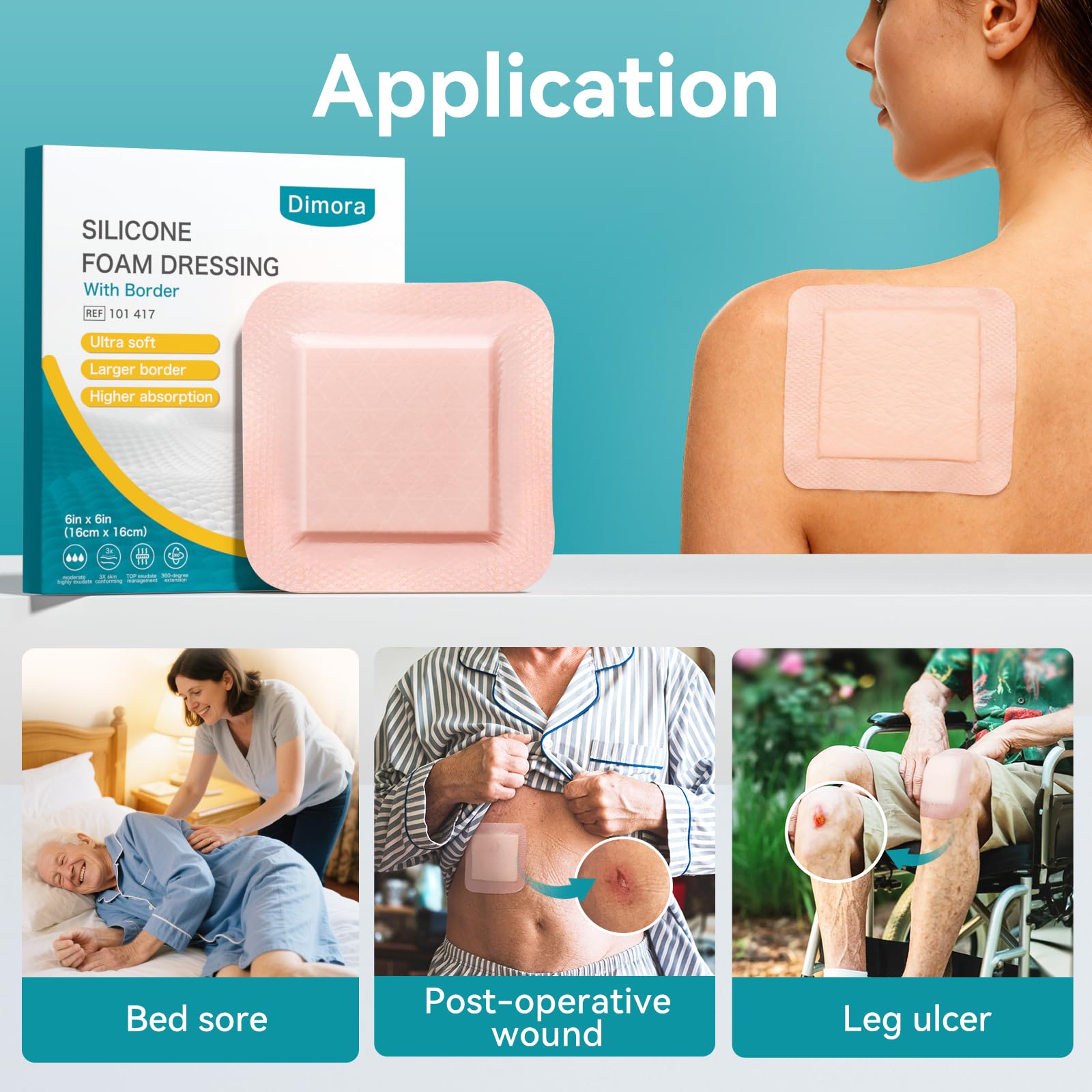 FSA/HSA Approved - Dimora 6x6 ultra soft bandages are FSA & HSA eligible. The large bandage is suitable for wounds with moderate to heavy exudate, such as surgical incisions, pressure sores, leg venous ulcers, neuropathic ulcers, arterial ulcers.
