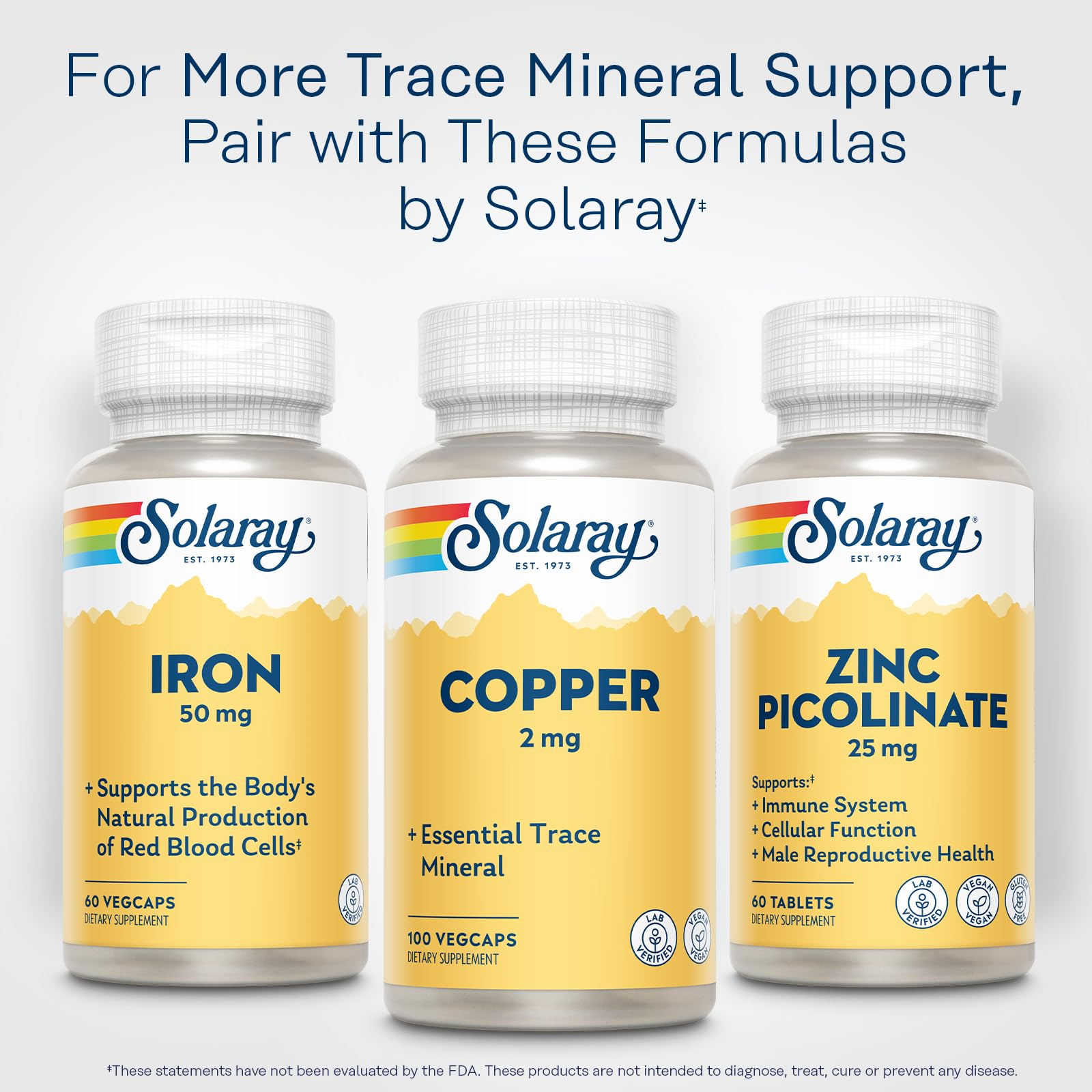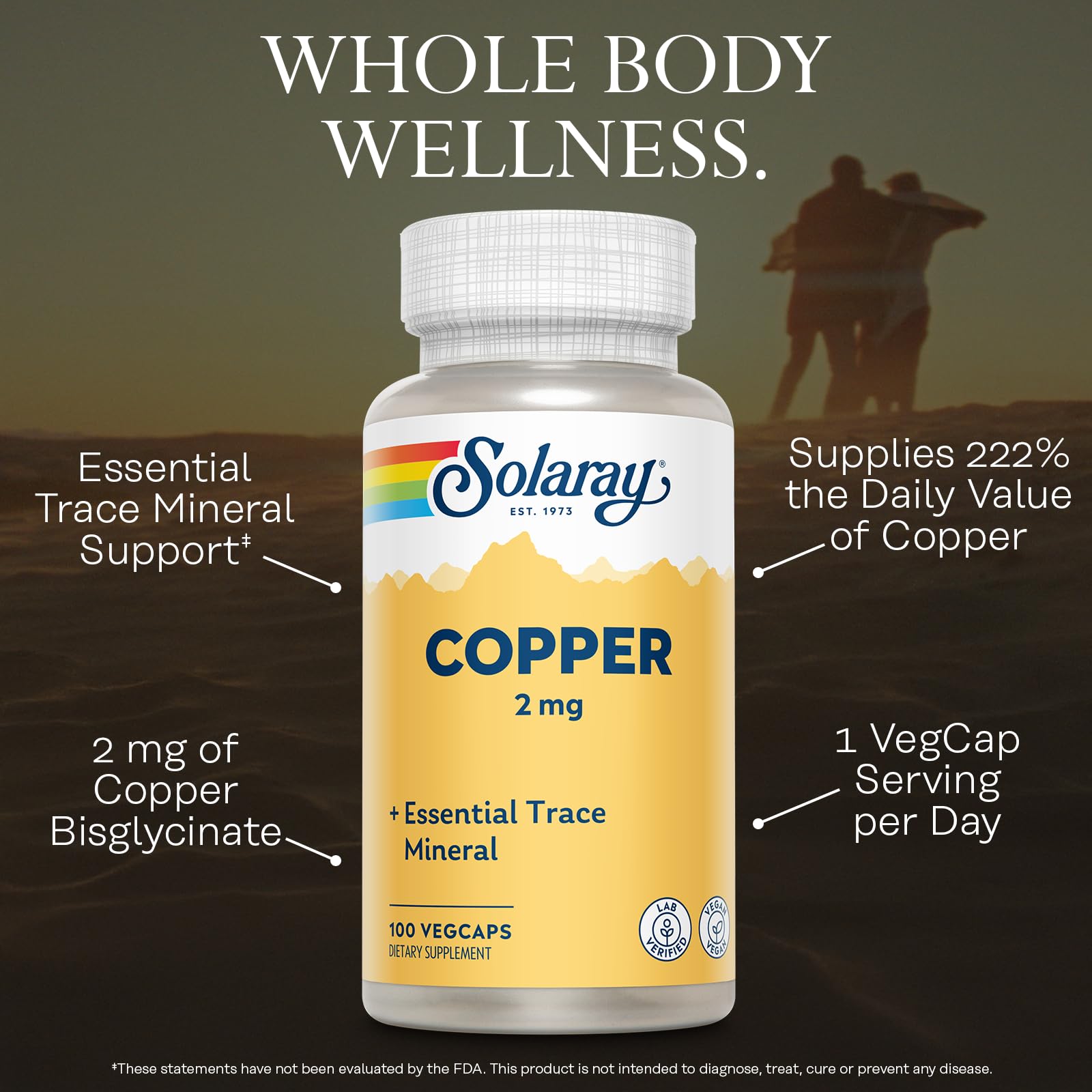 Essential Mineral Supplements - Each 1-VegCap serving of Solaray Copper supplies 2 mg of copper bisglycinate for powerful wellness support.* (Note that if you are taking a copper supplement regularly, you may also need other minerals like zinc or iron to achieve the proper balance.*)