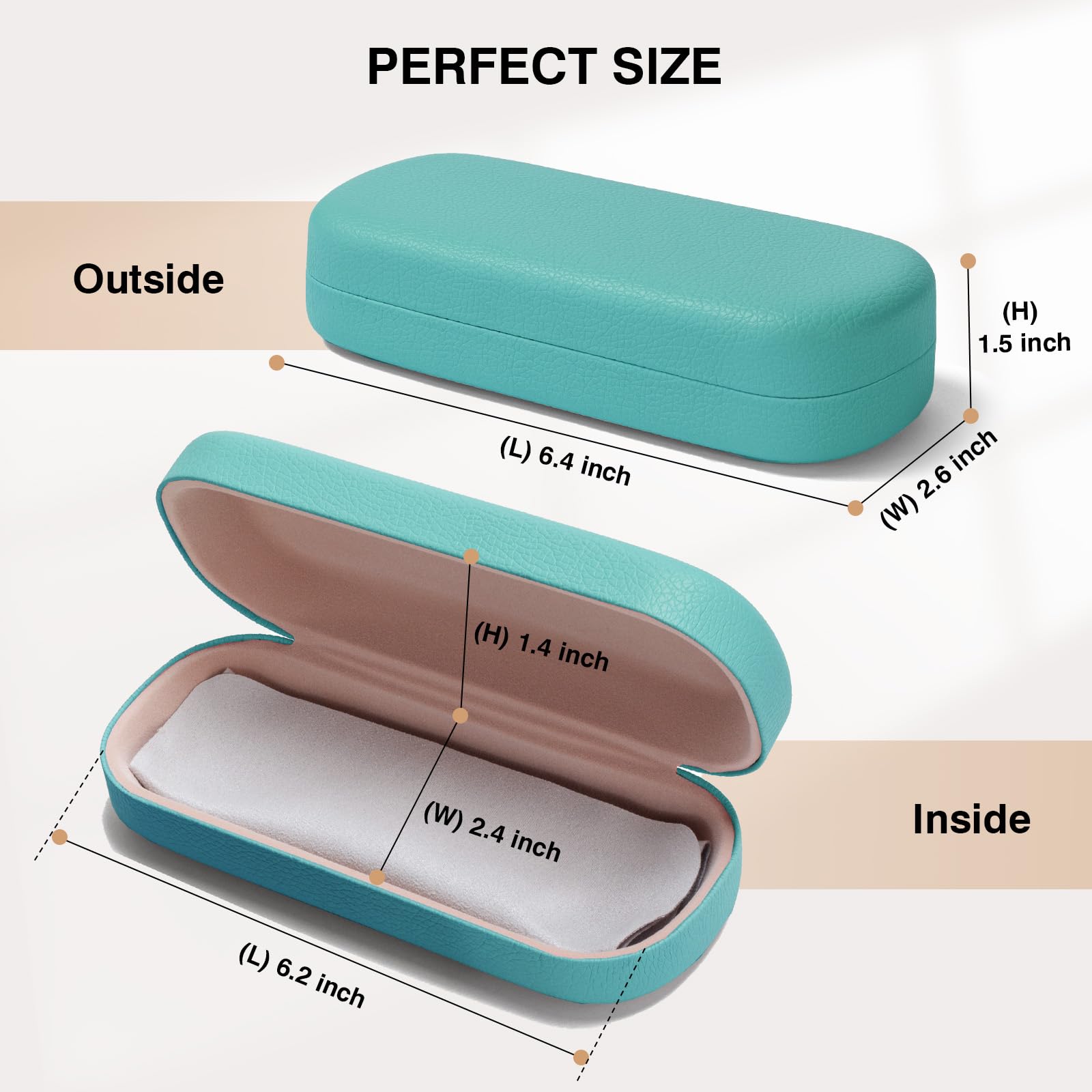 Suitable size: Package includes 1 pack hard shell glasses case with cleaning cloth. Size 6.2 x 2.4 x 1.4 inches inside and 6.4x 2.6 x 1.5 inches outside. This glass case is convenient and lightweight, which can put it into your pocket, purse, and bags conveniently and take it with you wherever you go