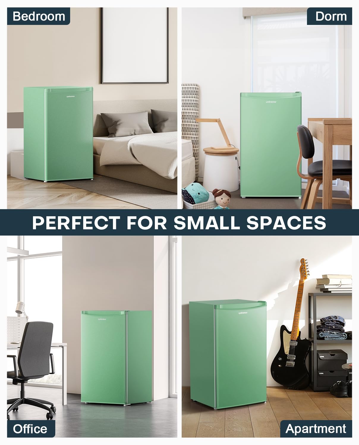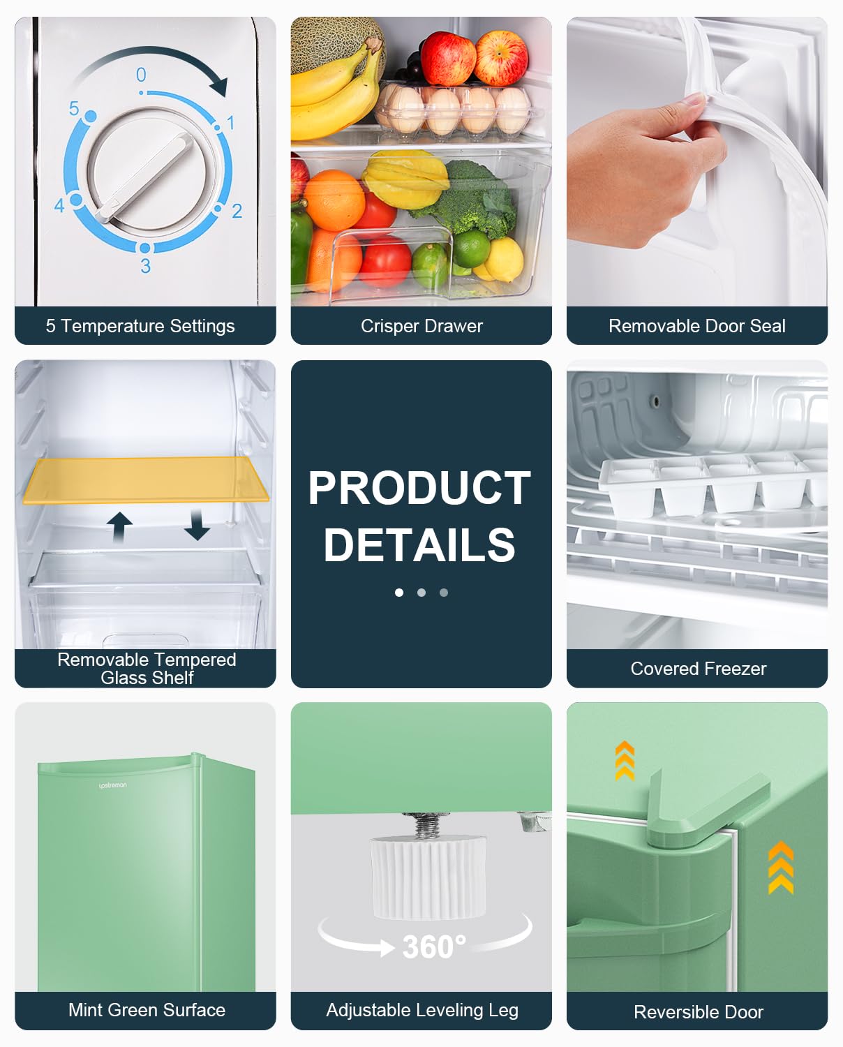 Crisper Drawer & Removable Shelves: Features a crisper drawer to keep your greens and fruits fresh and juicy. The small fridge storage space is adjustable to practical uses with removable shelves. Arrange these shelves how you see fit and you’d be amazed how much the small fridge can stores